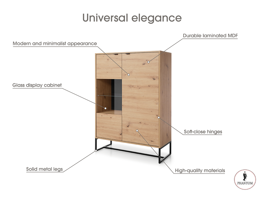 Amber Cabinet 93 - Storage Cabinet with Two Doors and Glass Cabinet Display