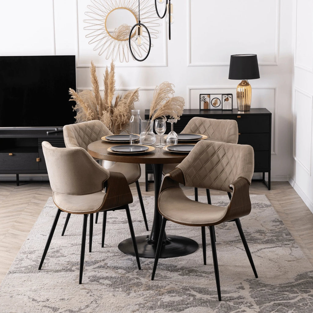 Elite DAKOTA Beige/Walnut Velour Chair – A Fusion of Elegance and Comfort