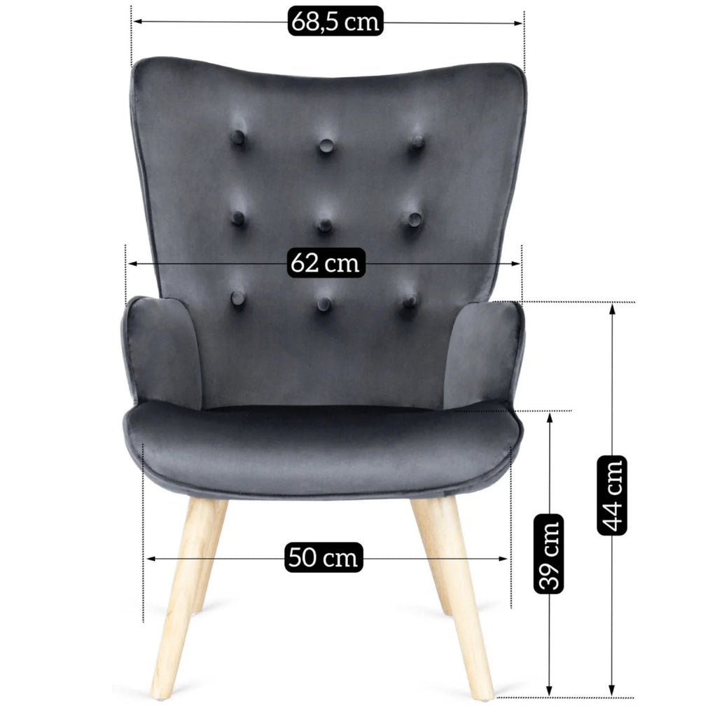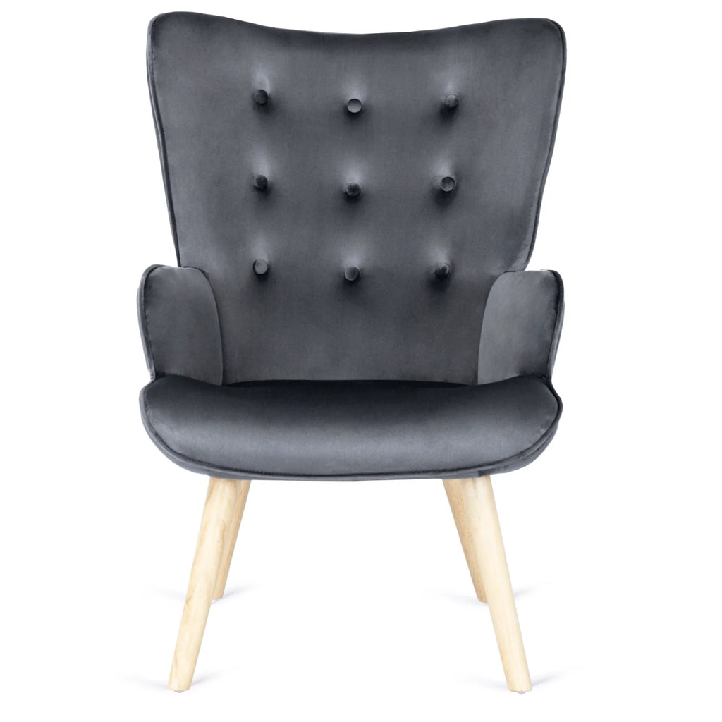 Elite LOZANO Grey Velvet Armchair with Footstool