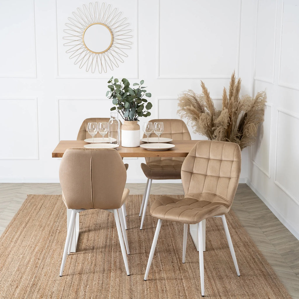 Elite LUCKY Beige Velvet Chair with White Legs – A Touch of Elegance