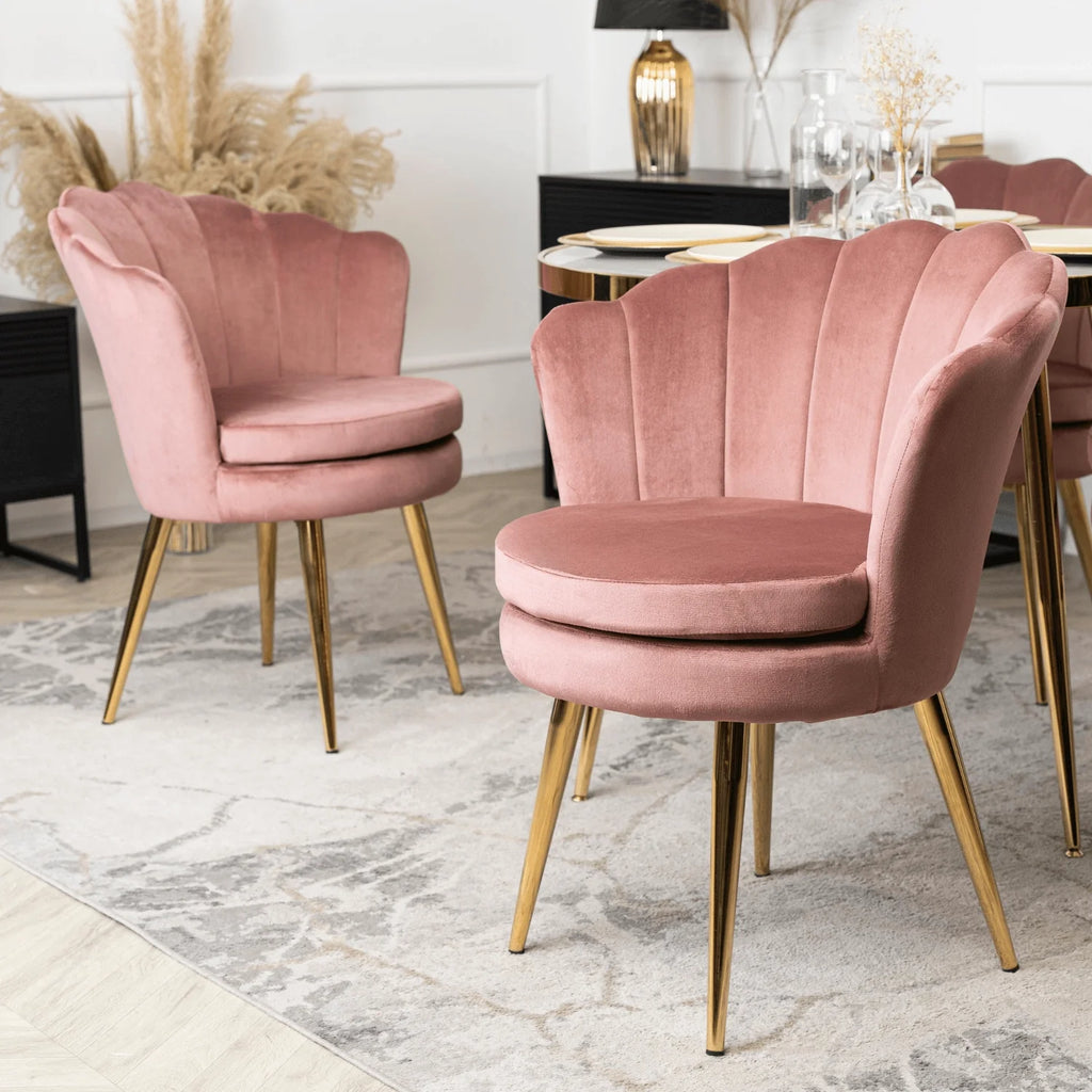 Elite VIOLA Chair – Luxurious Pink Velvet with Gold Legs