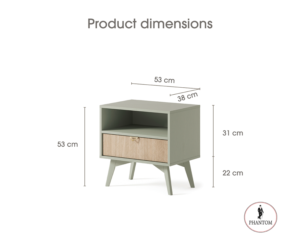 The Forest Nightstand, part of the rustic Forest collection, offers both style and functionality for your bedroom. With a single drawer and an open shelf, this nightstand provides the perfect spot to keep your essentials within reach. Available in eucalyptus and sand finishes, the Scandinavian herringbone pattern adds a touch of elegance to its rustic design. Ideal for those who appreciate a blend of natural beauty and practical storage in their bedside furniture.