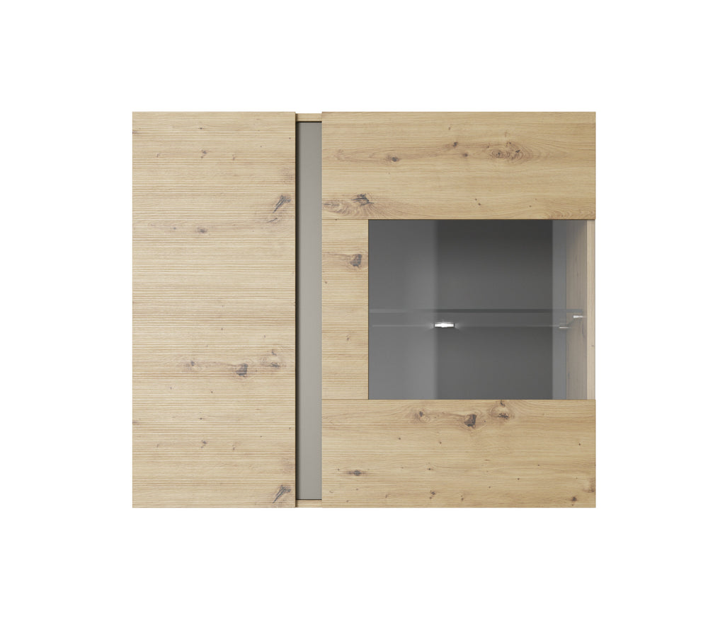 The Lask ARCO 138 sideboard with display cabinet in Artisan Oak offers the perfect balance of everyday storage and elegant presentation. With three spacious compartments and a glass-fronted display section, this piece is ideal for storing home essentials while showcasing your favourite decorations. The rich wood finish adds warmth and character to any modern or classic interior.