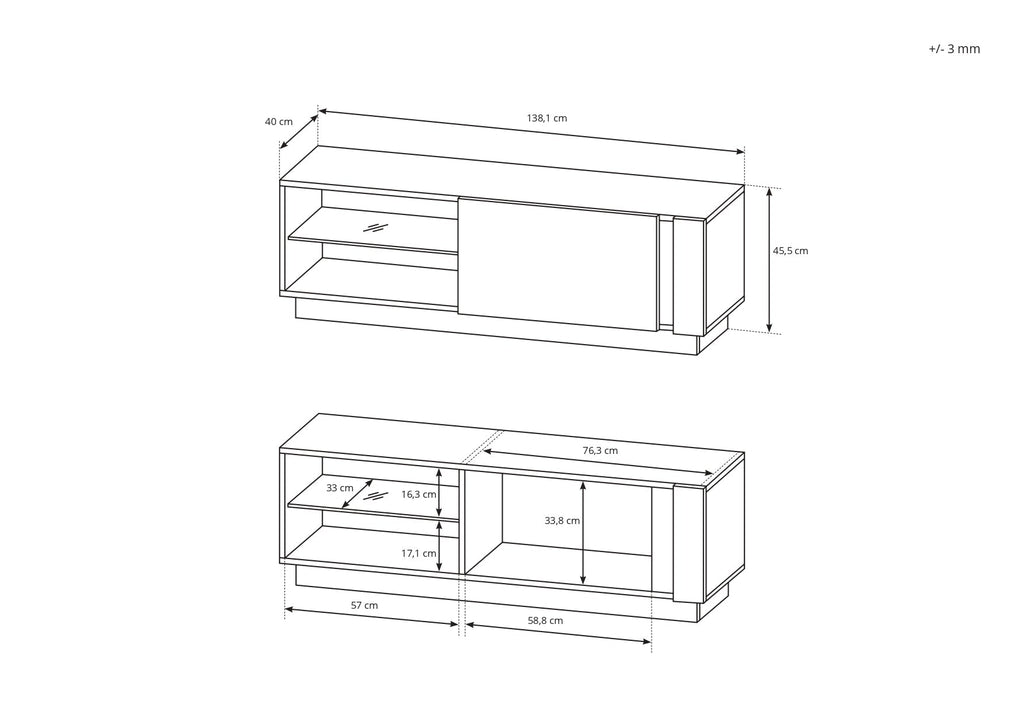 Stable surface – Holds up to 35 kg, suitable for most TVs and equipment