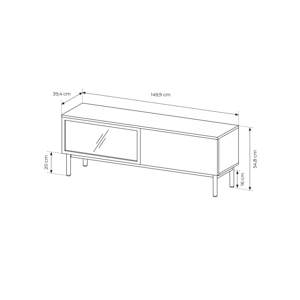 Balanced proportions – 149.9 cm wide and just 54.8 cm tall, the cabinet sits perfectly under a wall-mounted TV or supports a standing screen.