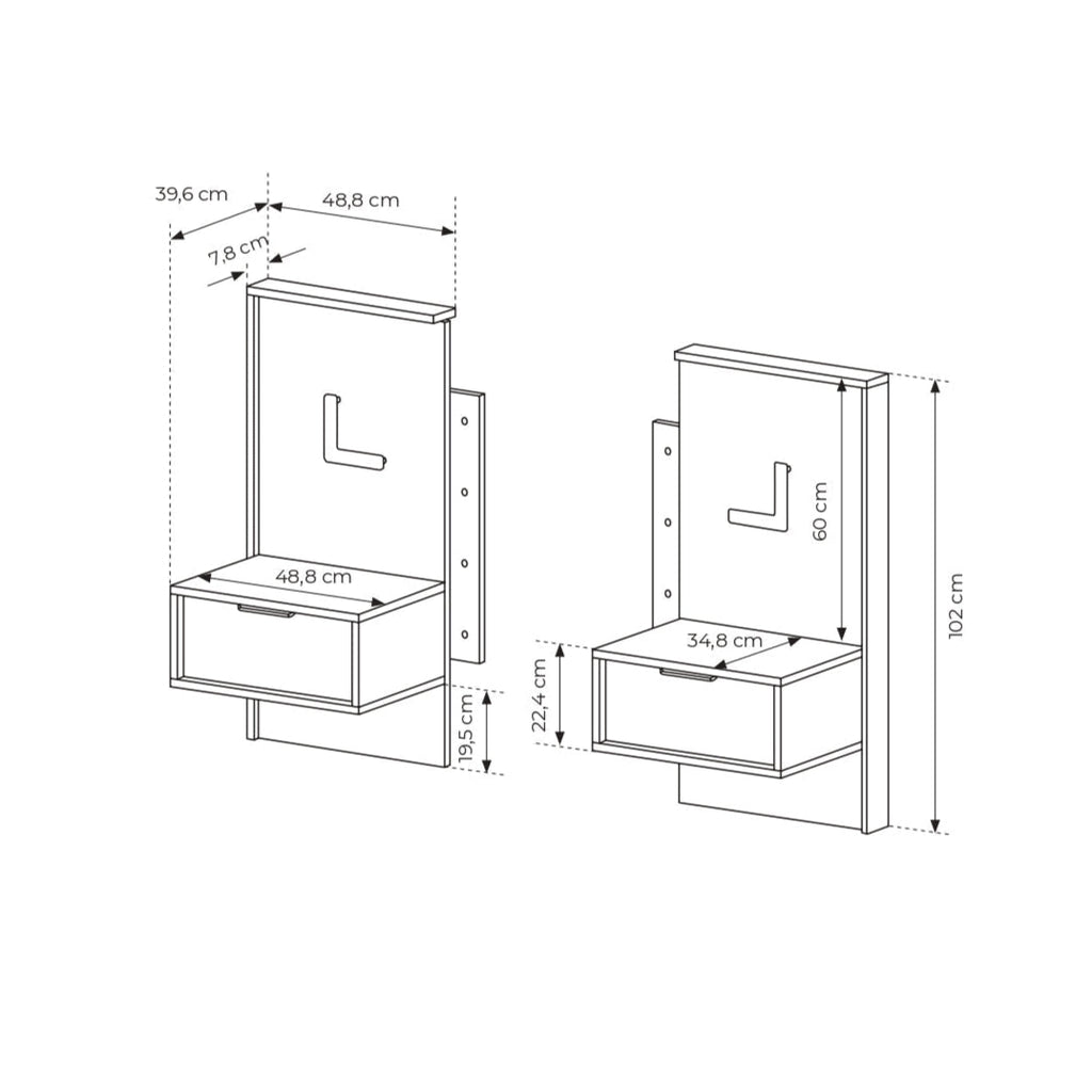 Dimensions: 48.8 cm + 48.8 cm (W) x 102 cm (H) x 39.6 cm (D)