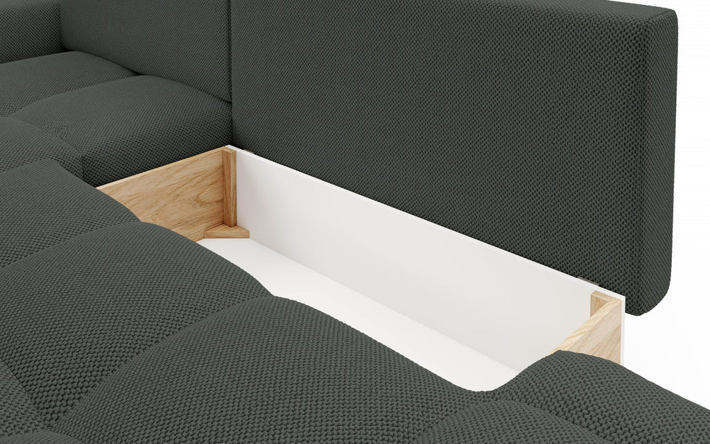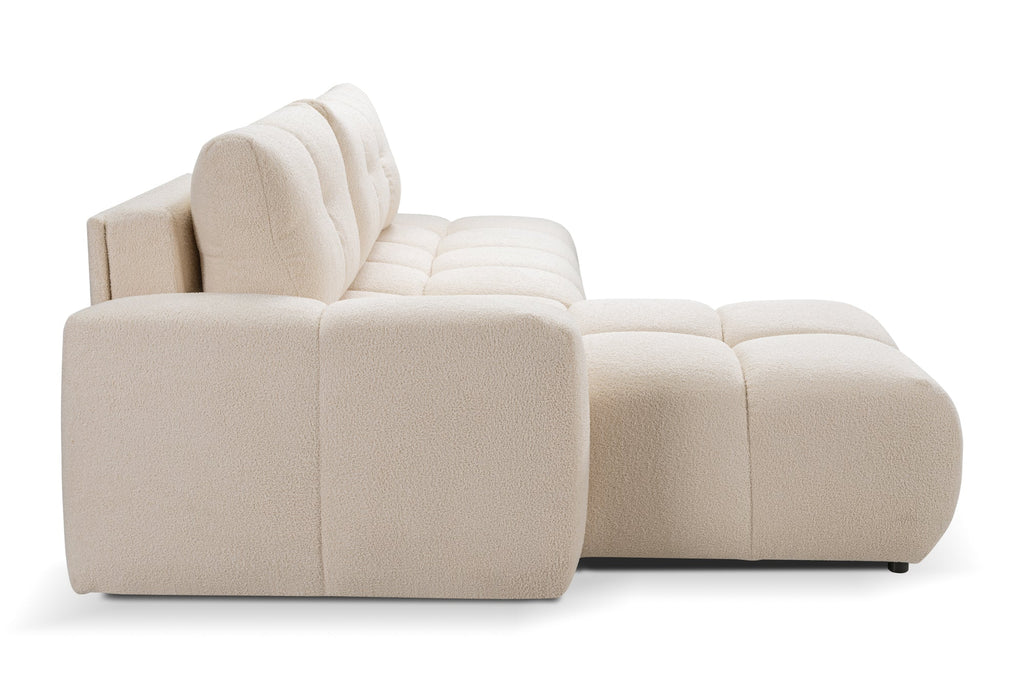 The Lask SOHO corner sofa brings a touch of softness and style to your living space with its rounded silhouette and decorative stitching. Designed for comfort and convenience, it features a spacious sleeping function and a built-in storage compartment—all wrapped in a smooth, cozy fabric that enhances the warmth of any interior.