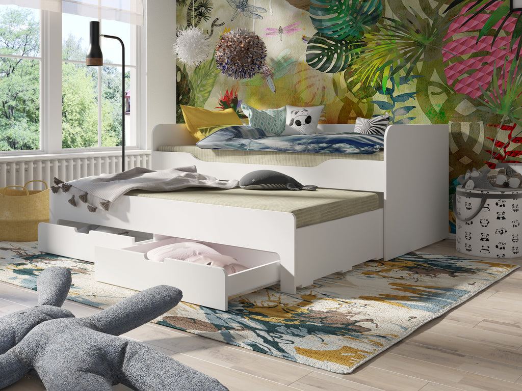 Storage Drawers – Two spacious under-bed drawers provide additional space for storing bedding, toys, or accessories.