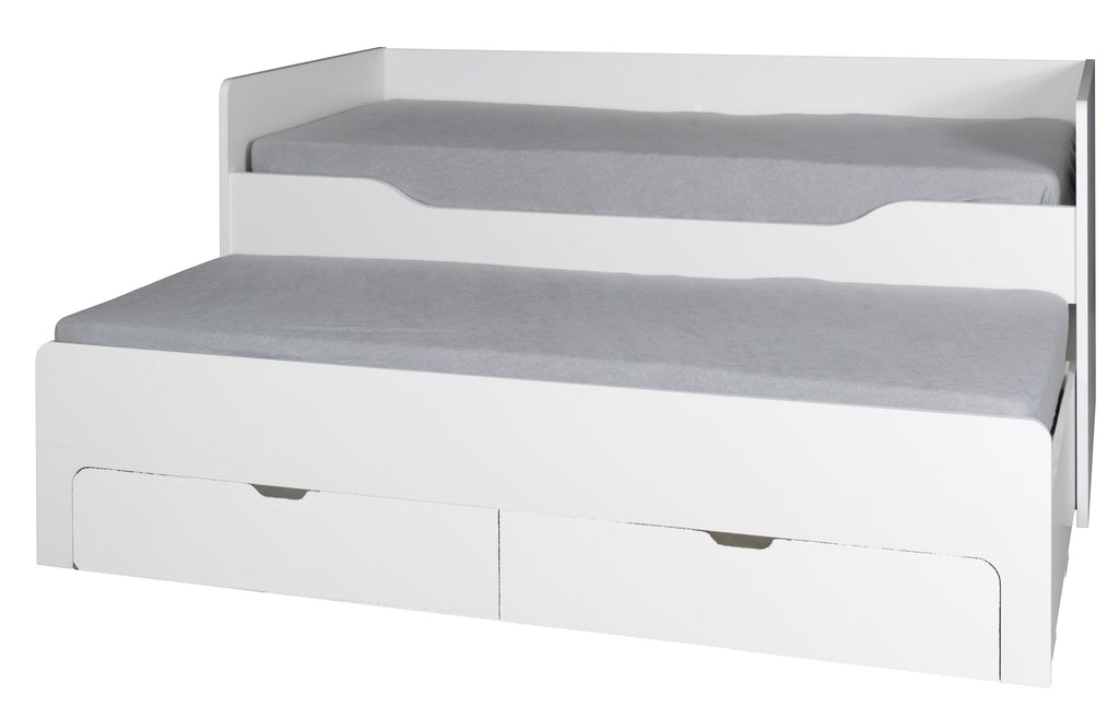 Mattresses are not included. Requires 90 x 190 cm mattresses, with the lower mattress thickness not exceeding 10 cm for smooth sliding.