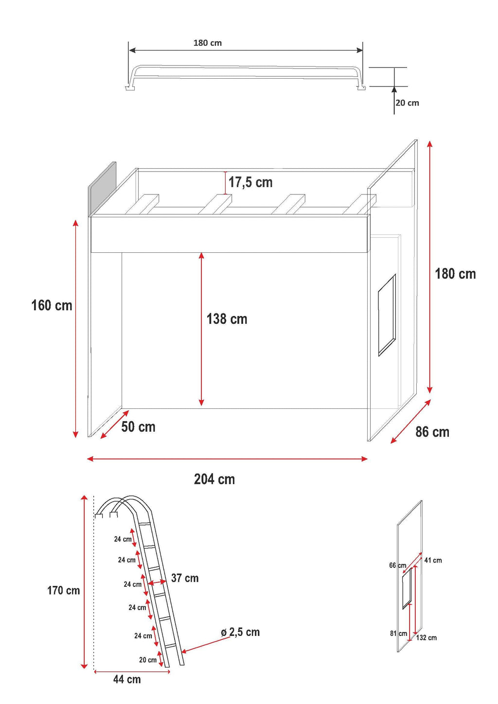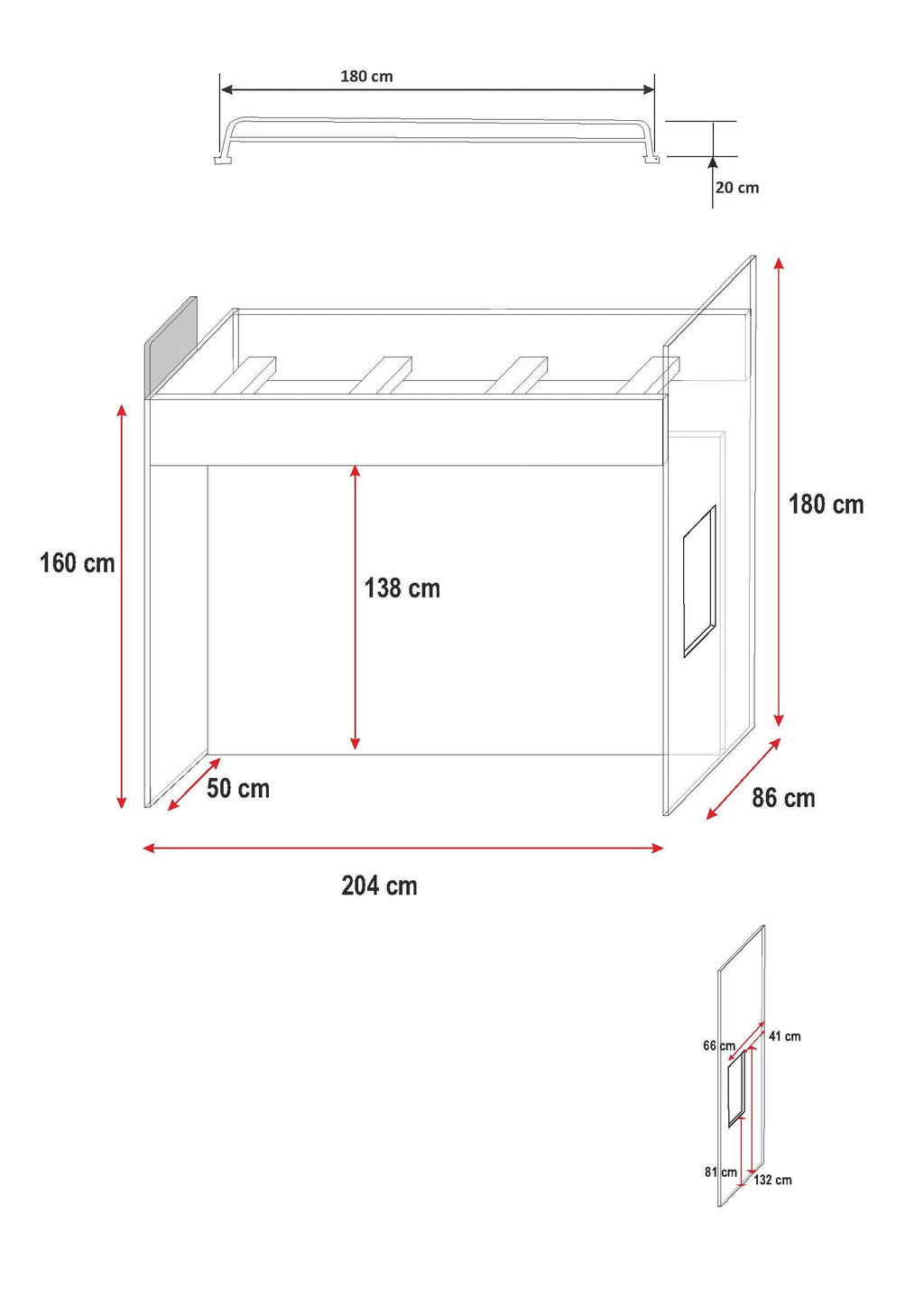 Upper bed length: 180 cm
