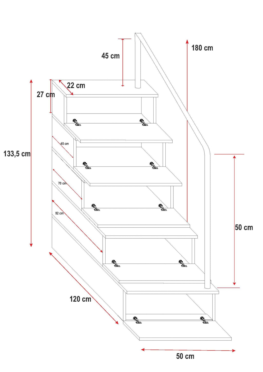 Stair width: 50 cm