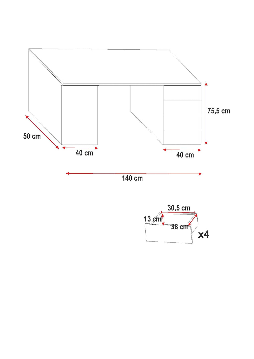 Desk height: 75.5 cm