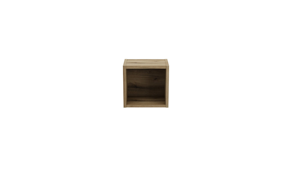 NOVA OAK A 83-27-Q (W83-04A): A compact shelf in Coast Evoke Oak with Matte White accents, perfect for small items or decorative purposes.