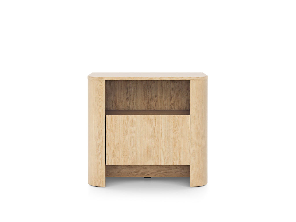 The PI Bari bedside table in Vicenza Oak brings a natural and calming touch to your bedroom with its soft contours, warm wood finish, and minimalist design. Ideal for modern interiors, this compact piece offers stylish practicality with a smooth, organic look.