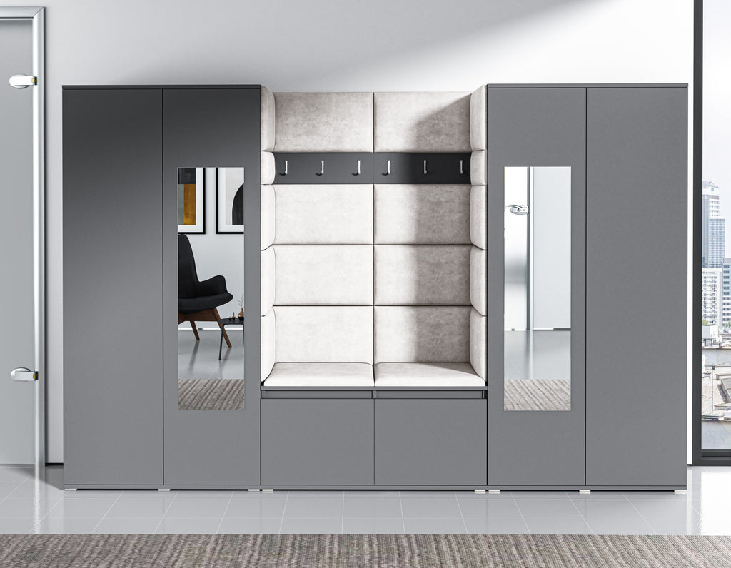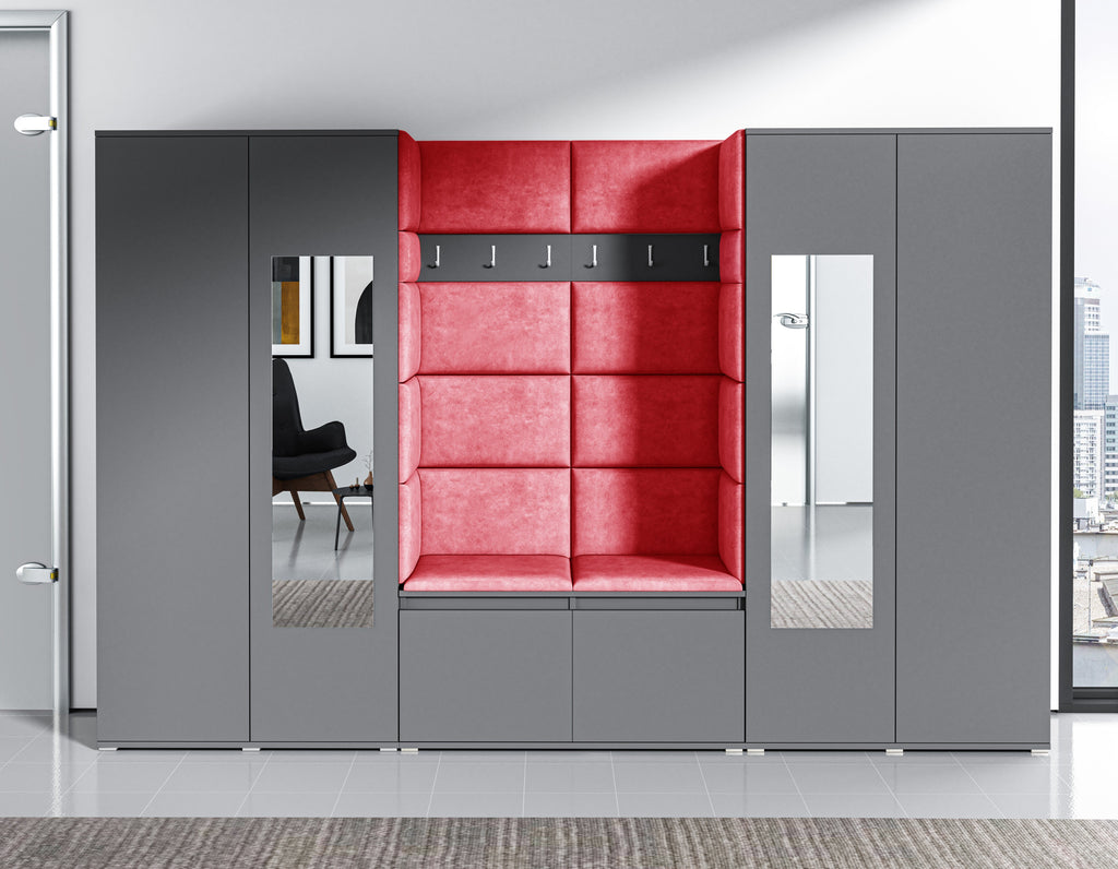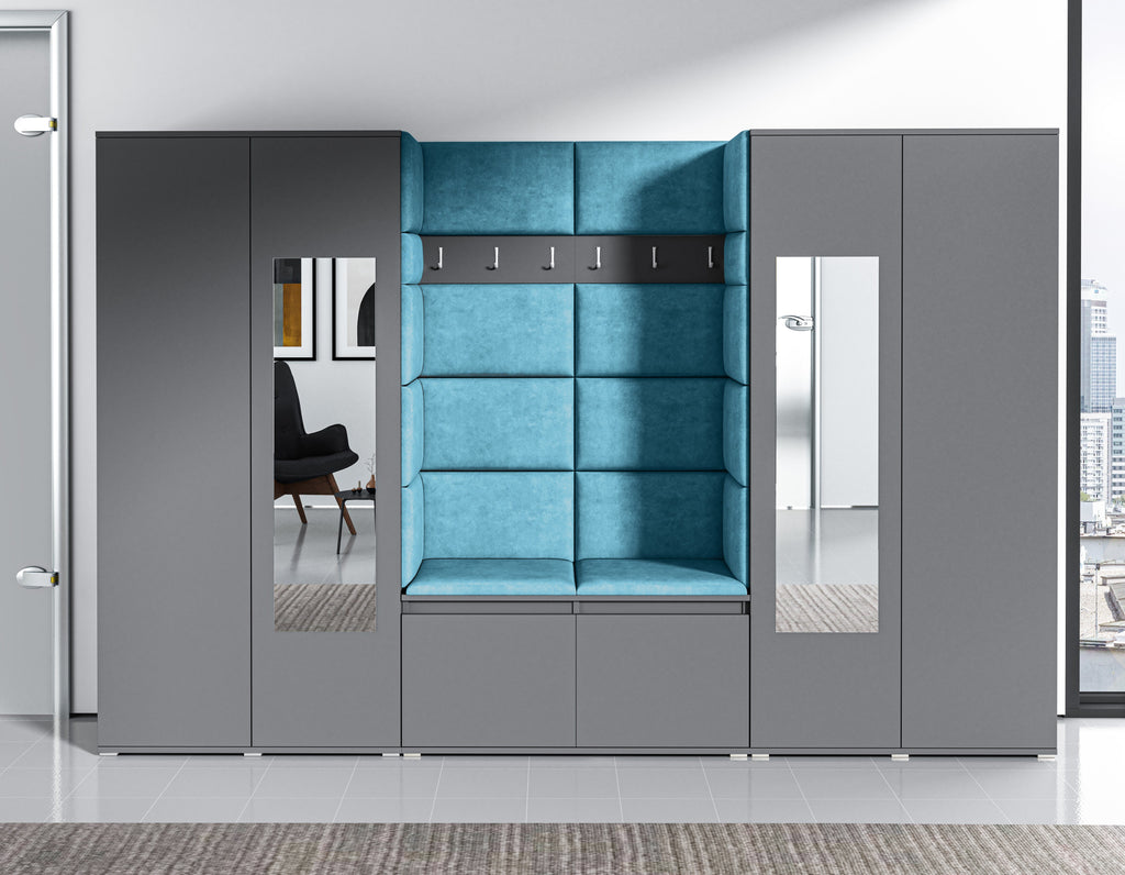 PK Emi 1 Hallway Wardrobe Graphite -Upholstered Panels in Various Colours