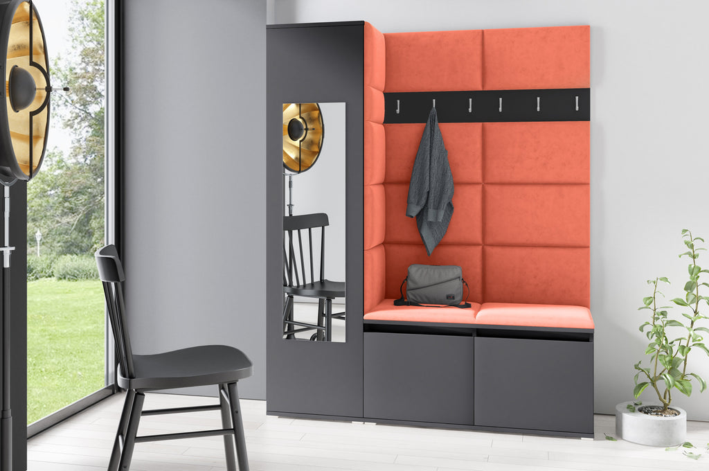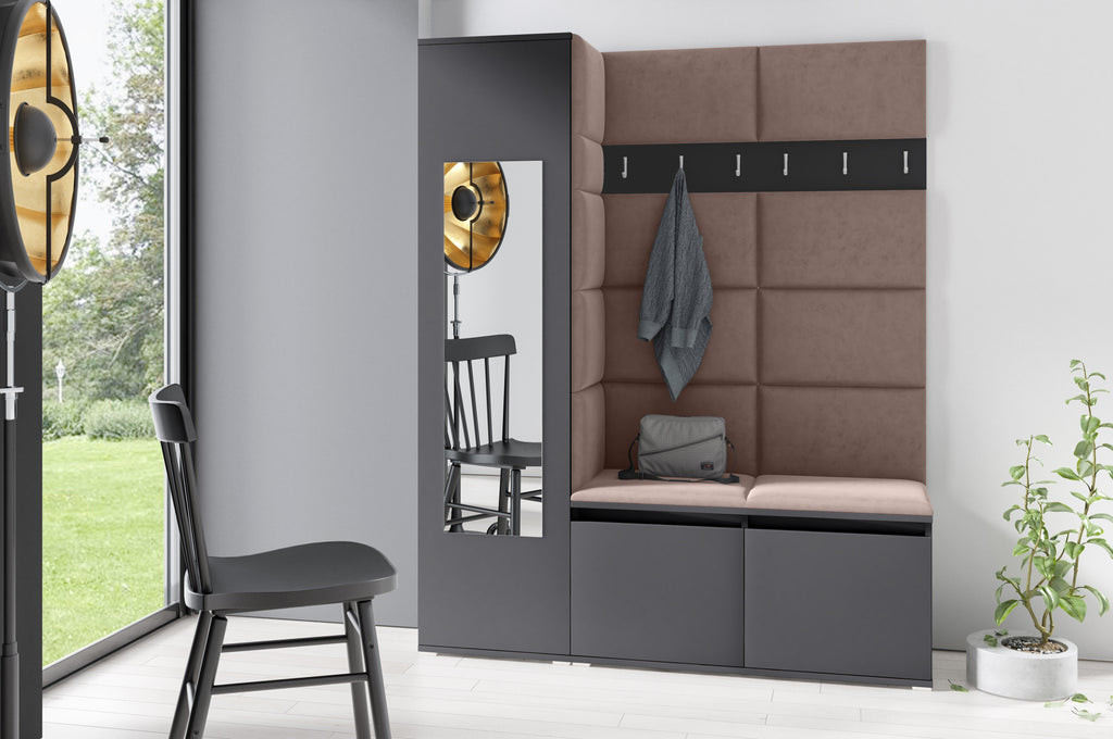PK Emi 14 Hallway Wardrobe Graphite - Upholstered Panels in Various Colours