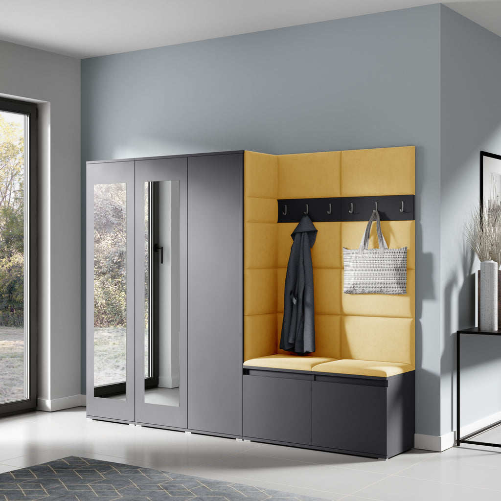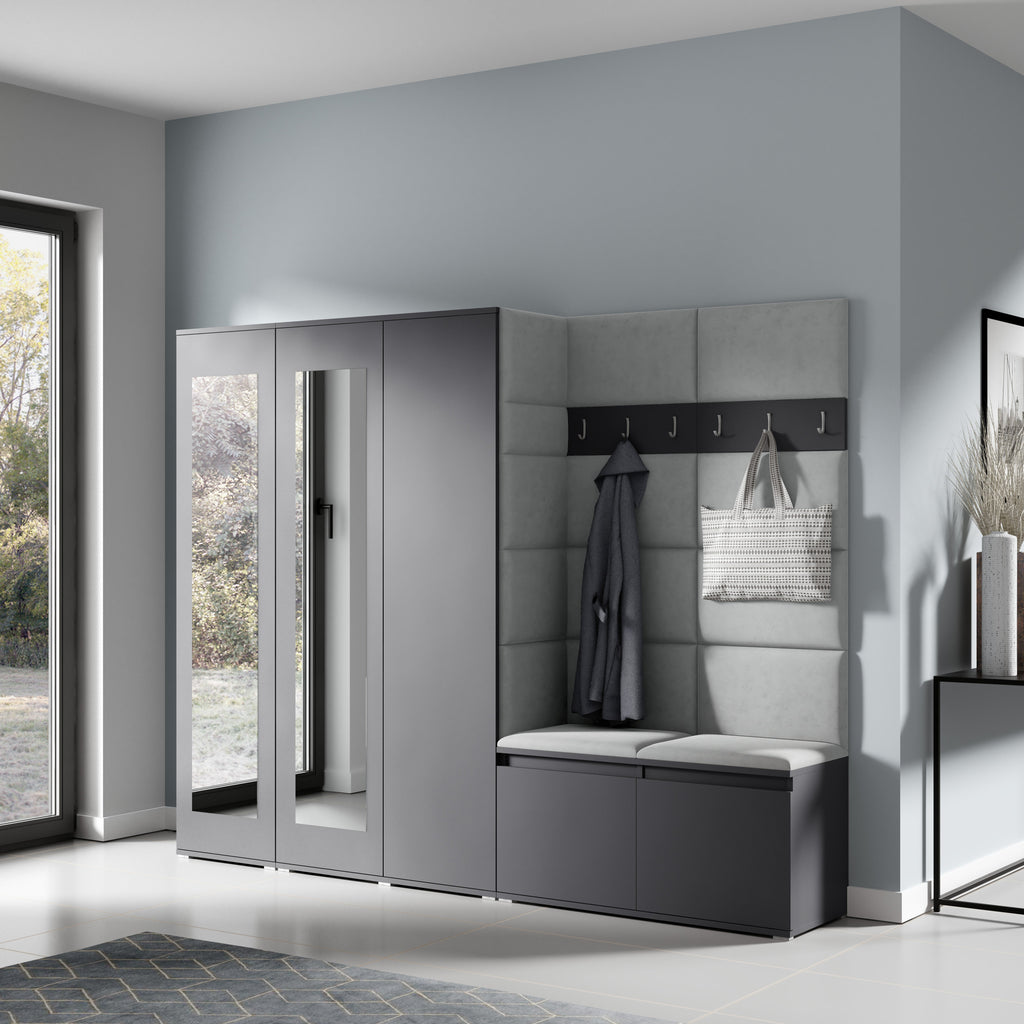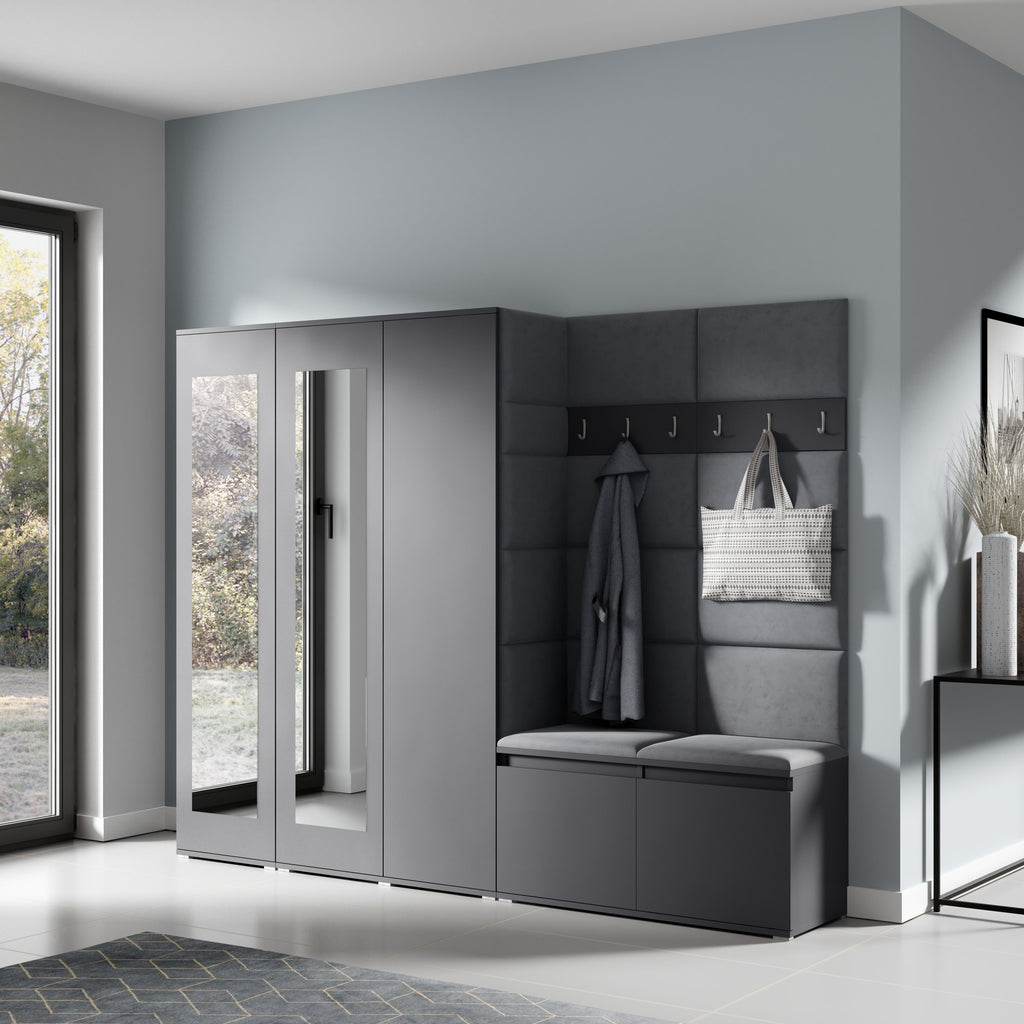 PK Emi 15 Hallway Wardrobe Graphite - Upholstered Panels in Various Colours