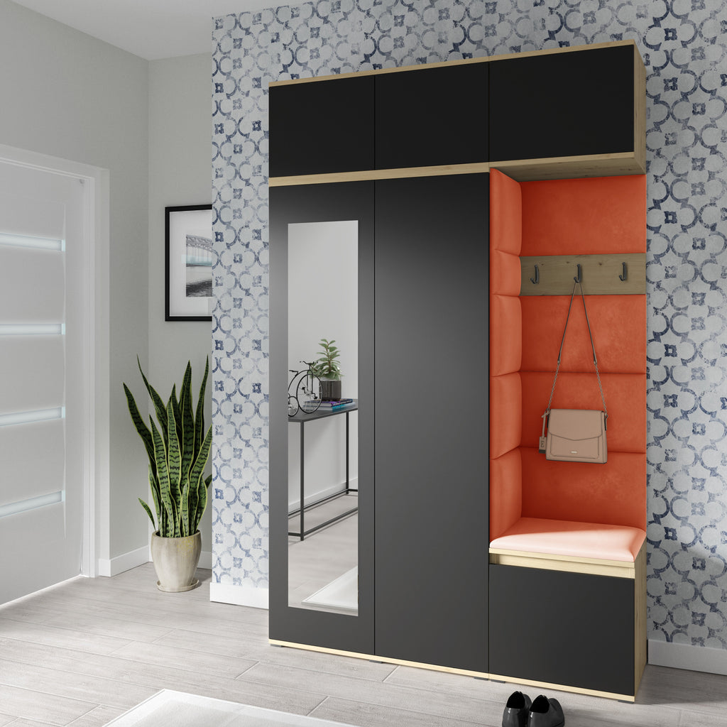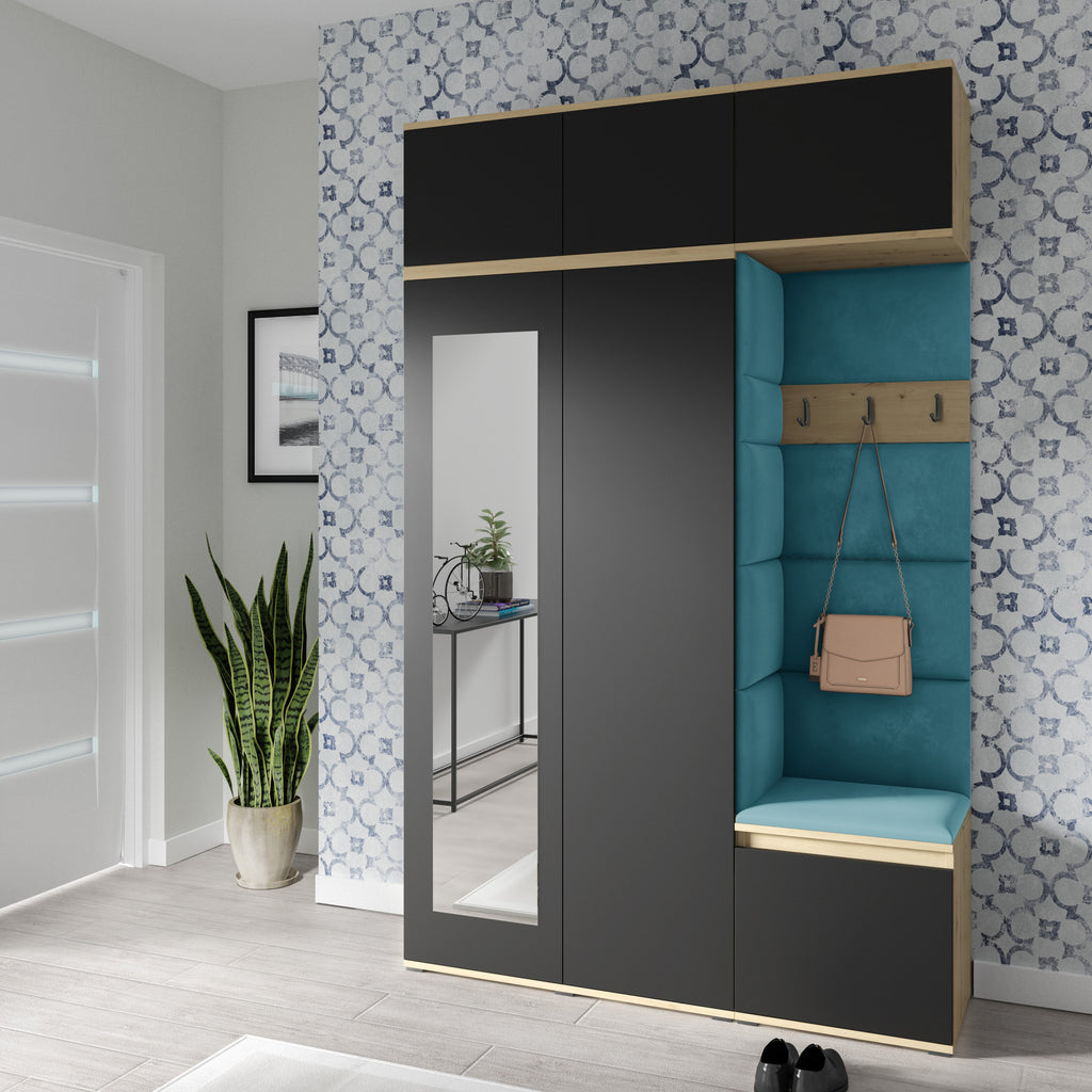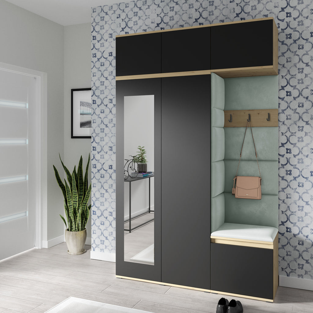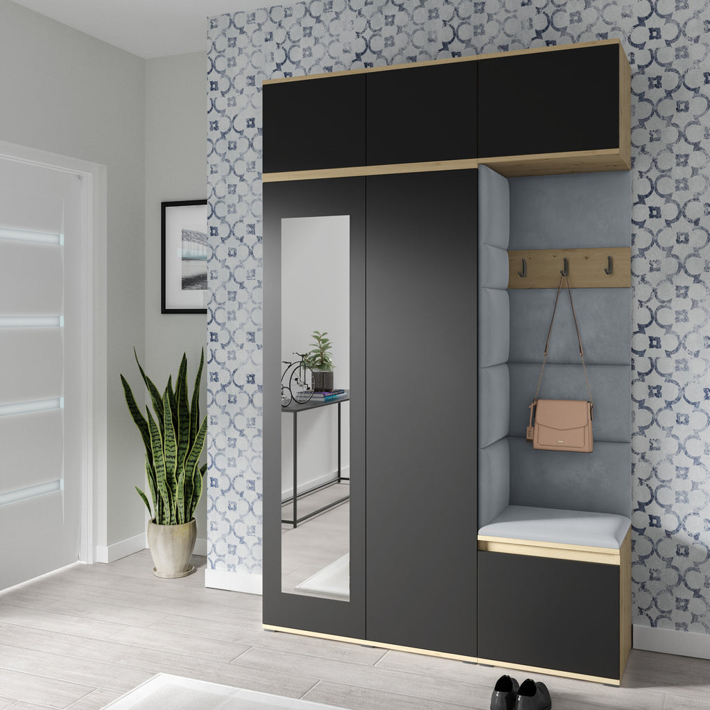 PK Emi 18 Hallway Wardrobe Artisan Oak / Black - Upholstered Panels in Various Colours