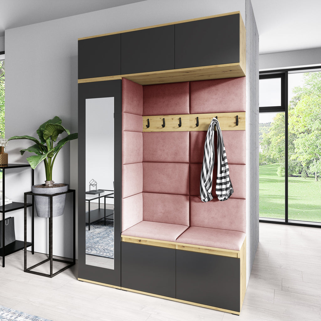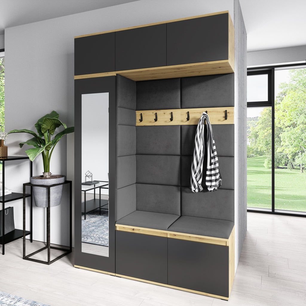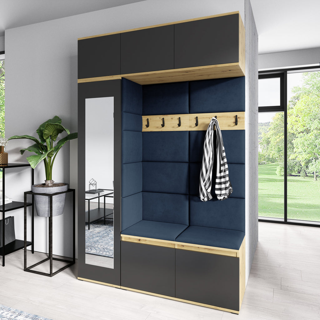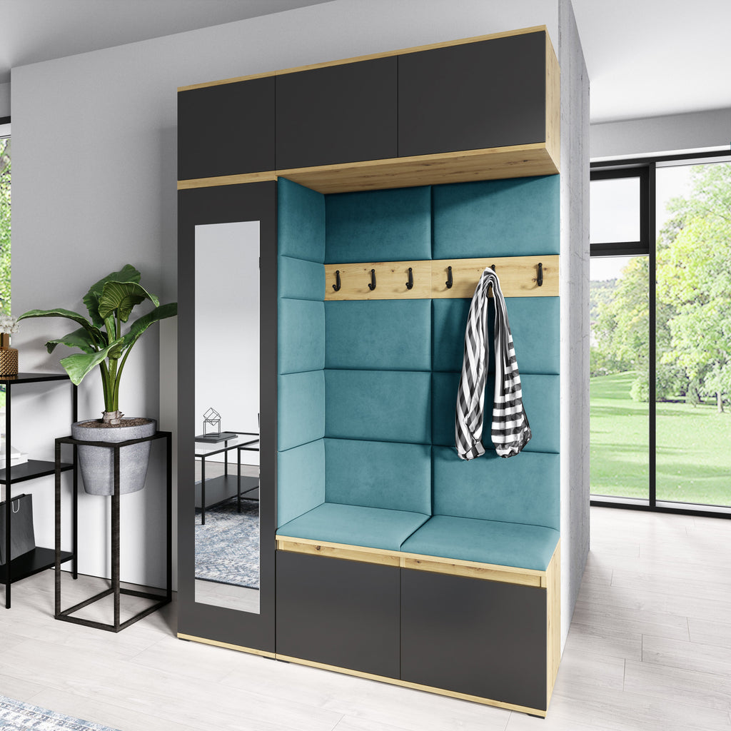 PK Emi 21 Hallway Wardrobe Artisan Oak / Black - Upholstered Panels in Various Colours