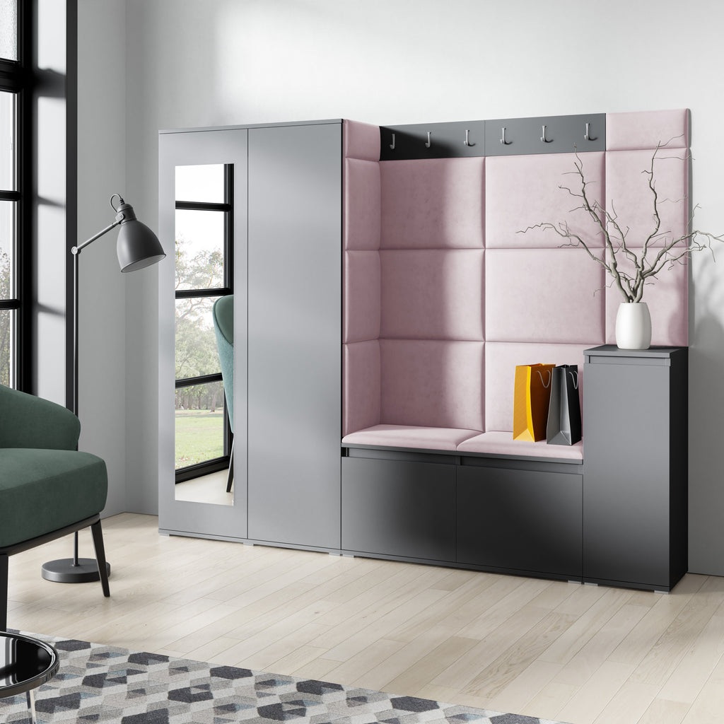 PK Emi 27 Hallway Wardrobe Graphite - Upholstered Panels in Various Colours