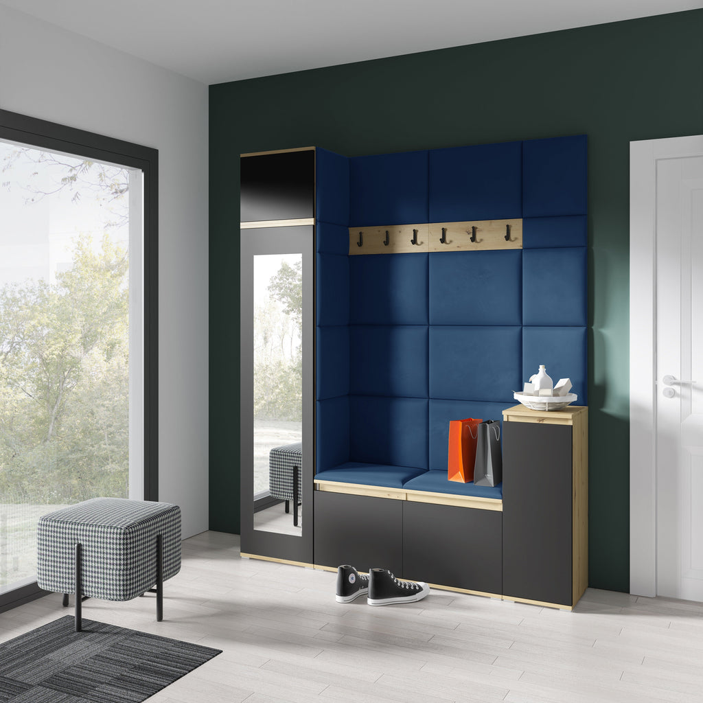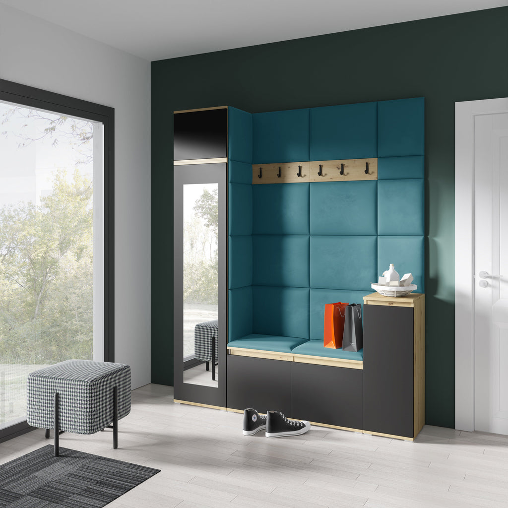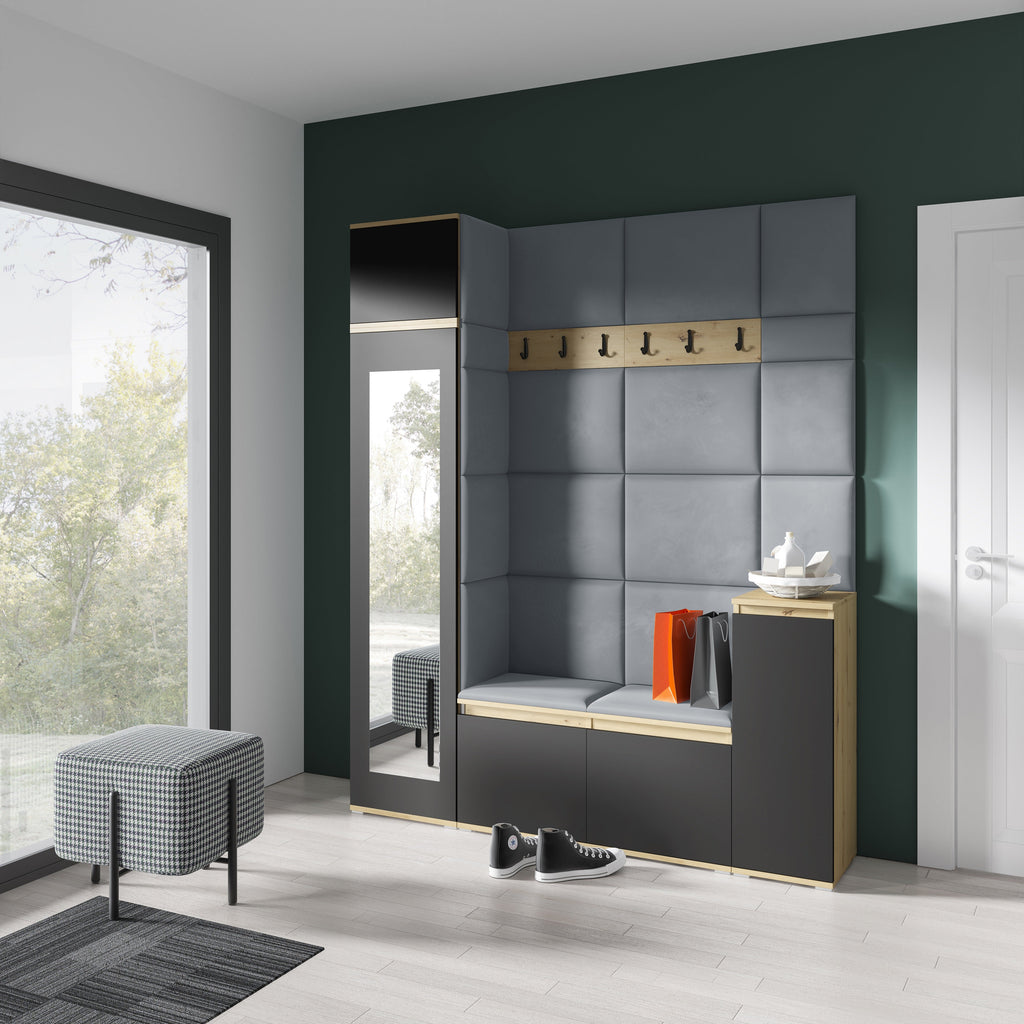 PK Emi 29 Hallway Wardrobe Aristan Oak/Black - Upholstered Panels in Various Colours