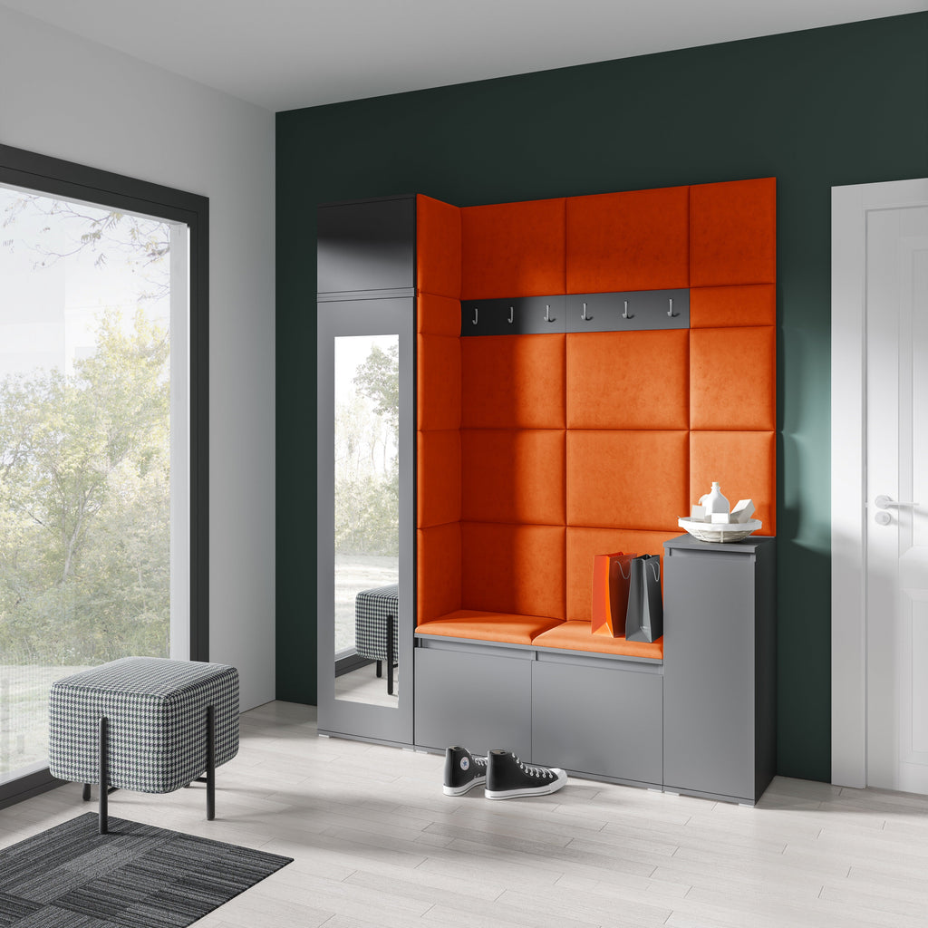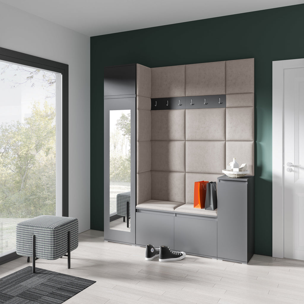 PK Emi 29 Hallway Wardrobe Graphite - Upholstered Panels in Various Colours