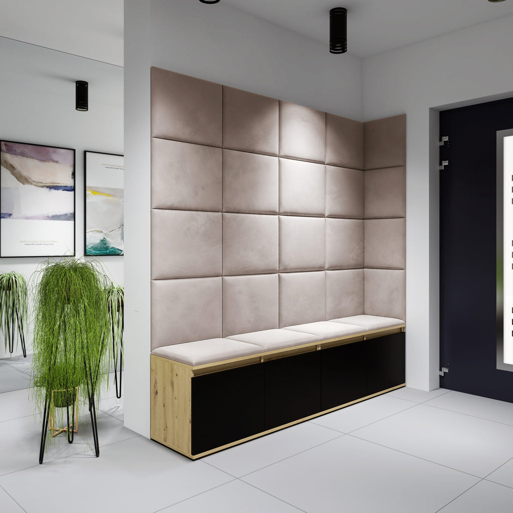 PK Emi 3 Hallway Wardrobe Artisan Oak / Black - Upholstered Panels in Various Colours
