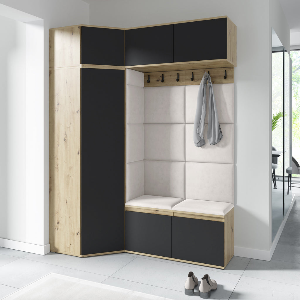 PK Emi 1 Hallway Wardrobe Artisan Oak / Black -Upholstered Panels in Various Colours