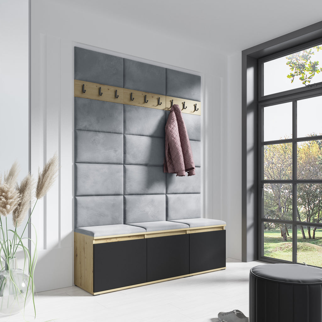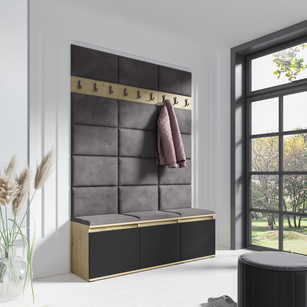 PK Emi 1 Hallway Wardrobe Artisan Oak / Black -Upholstered Panels in Various Colours