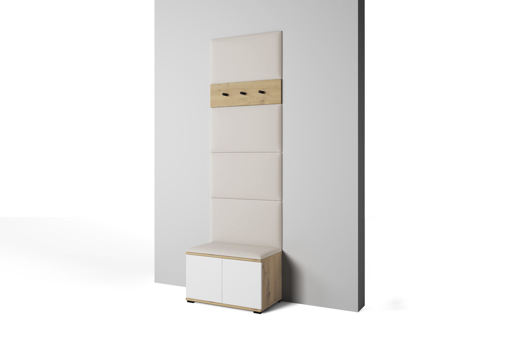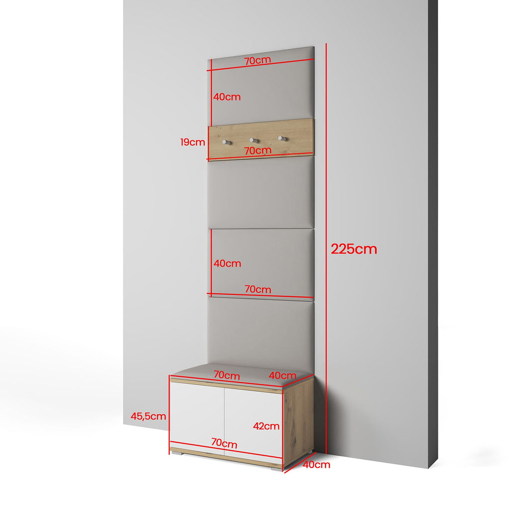 Make the most of your hallway space with the Sevilla Wardrobe – Version 6, a compact and stylish furniture set designed to combine functionality with modern design. With its vertical structure, soft upholstered panels, and practical storage options, this hallway solution ensures that your entrance remains tidy, welcoming, and comfortable. Whether you're putting on shoes, hanging your coat, or storing everyday essentials, this set delivers everything you need in one cohesive unit. Its warm artisan oak and clean white finish make it a perfect fit for contemporary interiors.