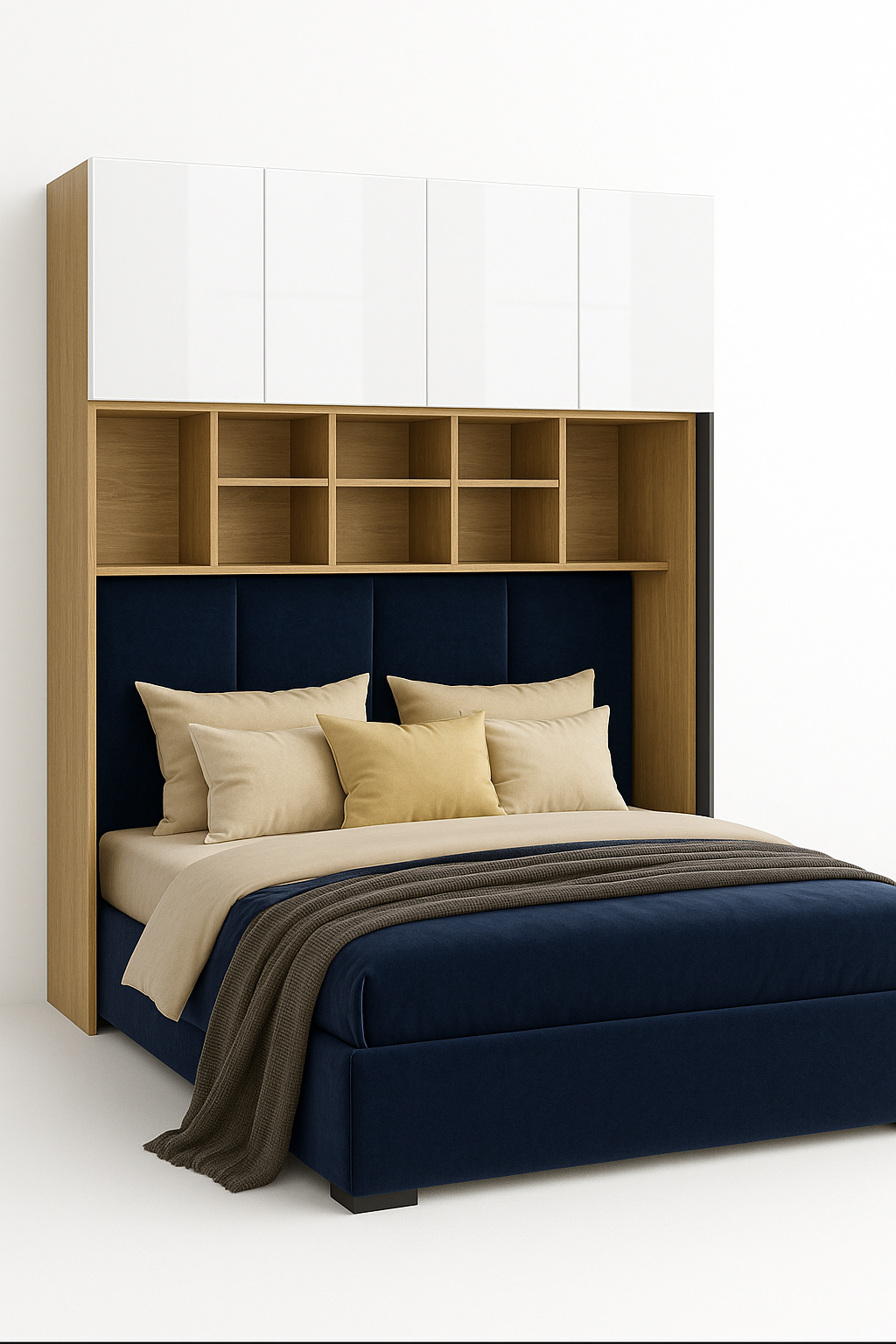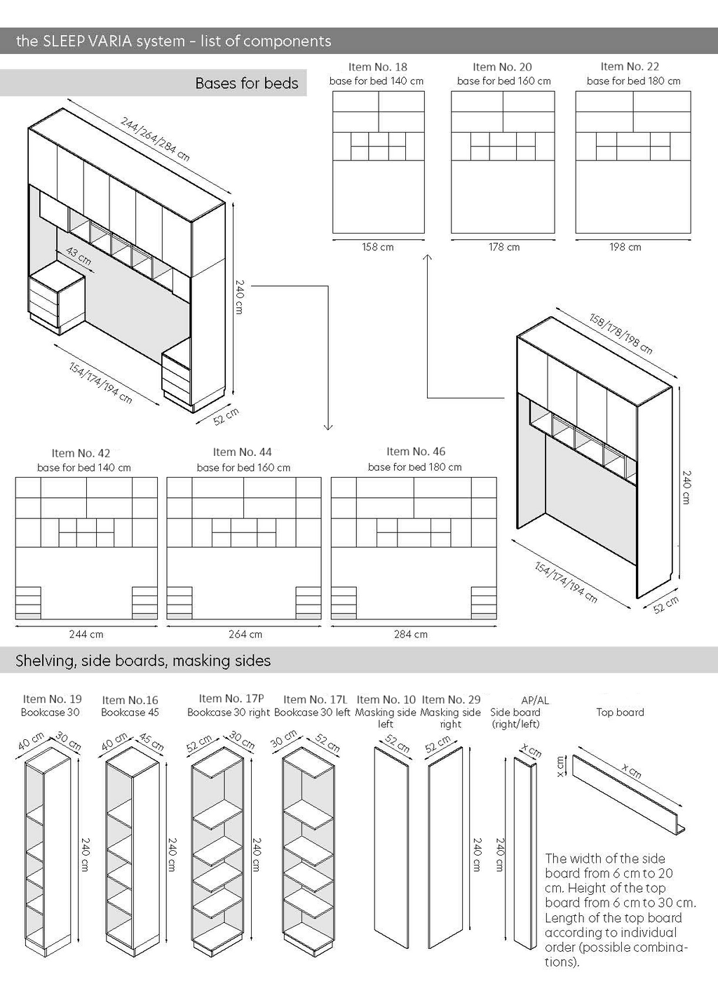 Bed Base Units – Width: 158 | 178 | 198 cm (for mattress widths 140 | 160 | 180 cm). Includes an open headboard space and side storage columns. View full product description