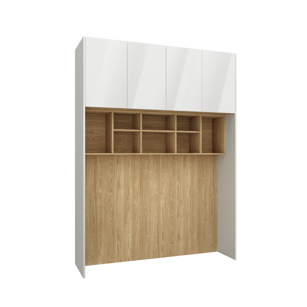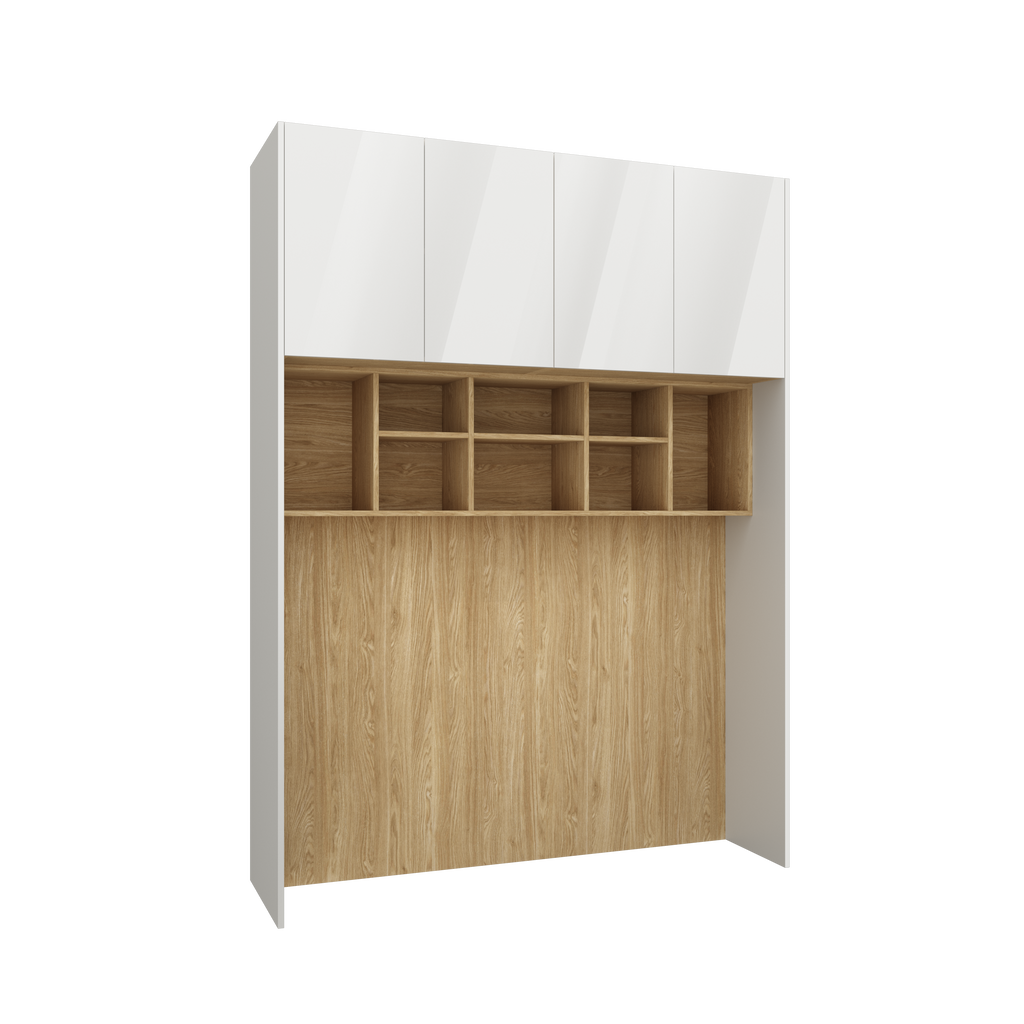 All wardrobe and shelving modules feature a tall design of 240 cm (+0.6 cm for gliders), which works seamlessly with custom fillers to create a streamlined built-in appearance.