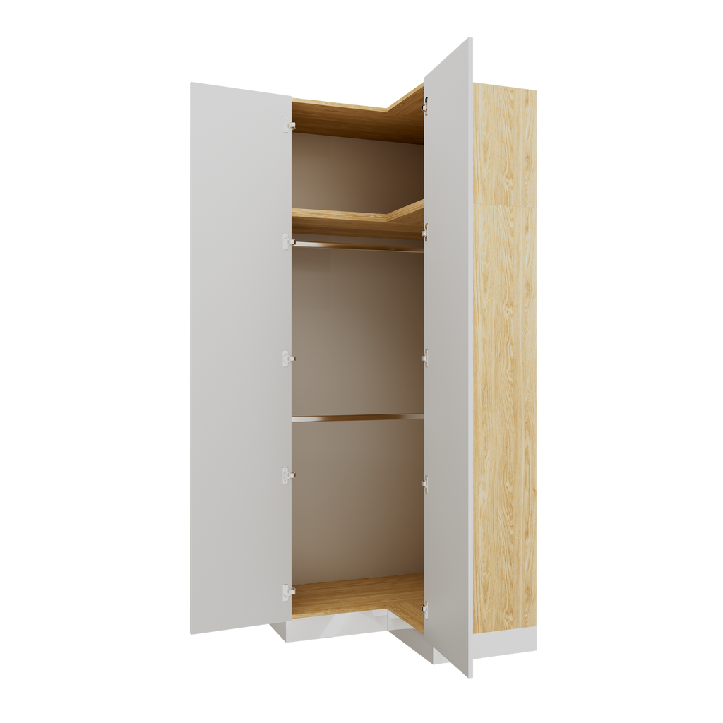 Corner Wardrobe 97.4 x 97.4 cm – Designed to make use of corner space, with integrated shelf and three rails. View full product description