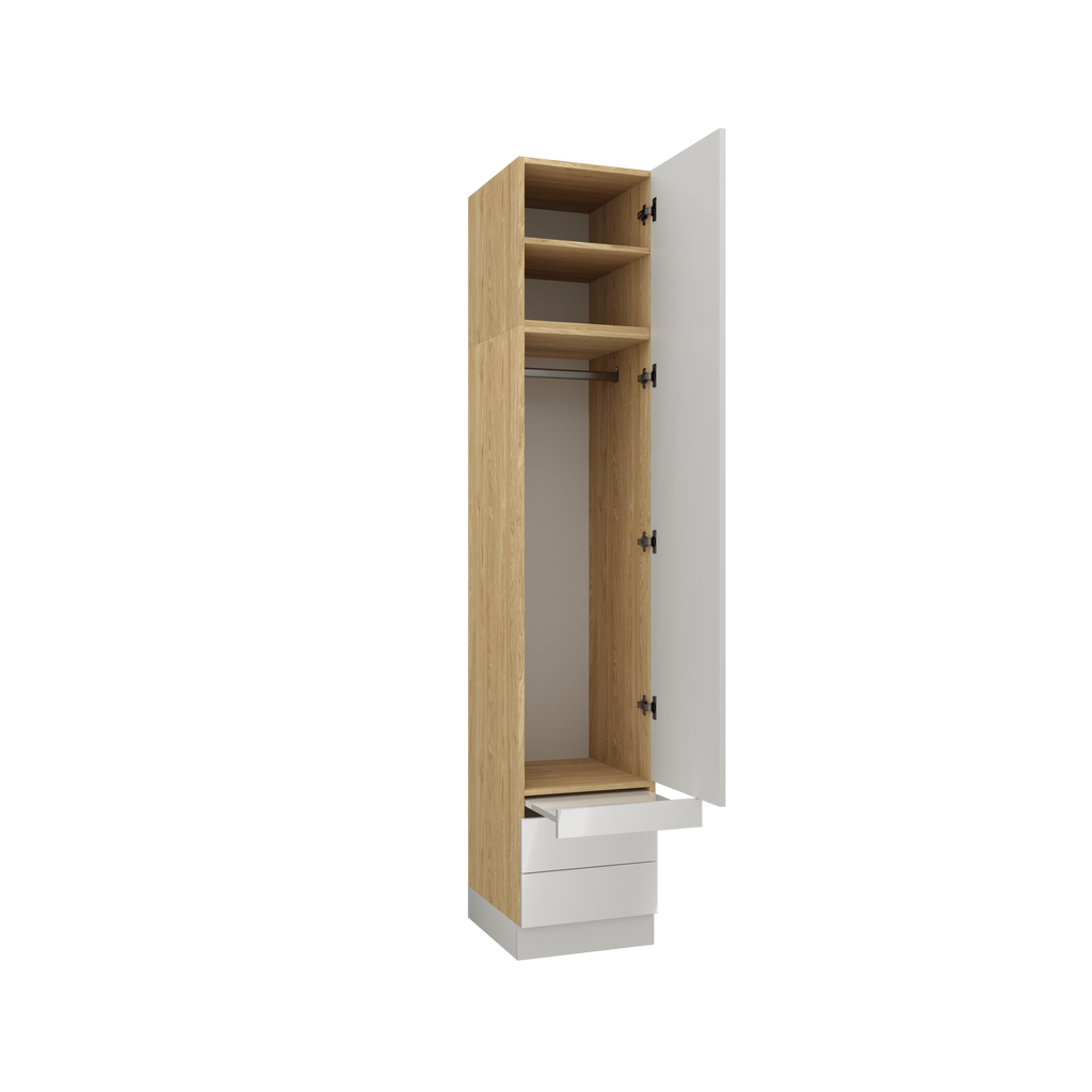1-Door Wardrobe 45 cm with Internal Drawers & Shelves – Slim format with shelving and drawers to keep clothing, accessories or linens well sorted. View full product description