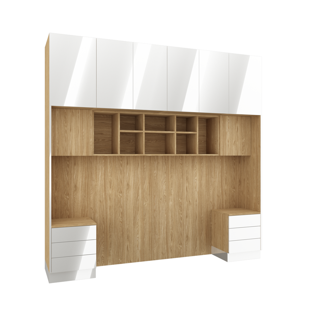 SLEEP VARIA Customizable Bedroom Build-in System with Nightstands – Oiled Oak / White Gloss