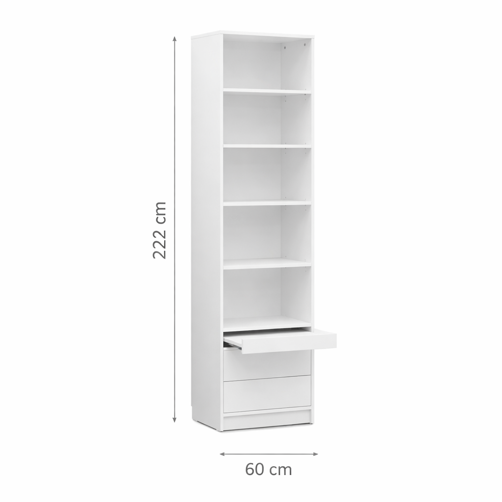 Genius-Regale mit Fächern und Schubladen sind eine großartige Lösung für alle, die Wert auf Ordnung und einfachen Zugriff auf gelagerte Gegenstände legen. Kleiderschränke aus der Genius-Kollektion, ausgestattet mit Kleiderbügeln, Schubladen und Regalen, sorgen für umfassende Ordnung im Kleiderschrank. Sie sind in glänzendem Weiß erhältlich und verleihen dem Interieur Modernität und Frische.