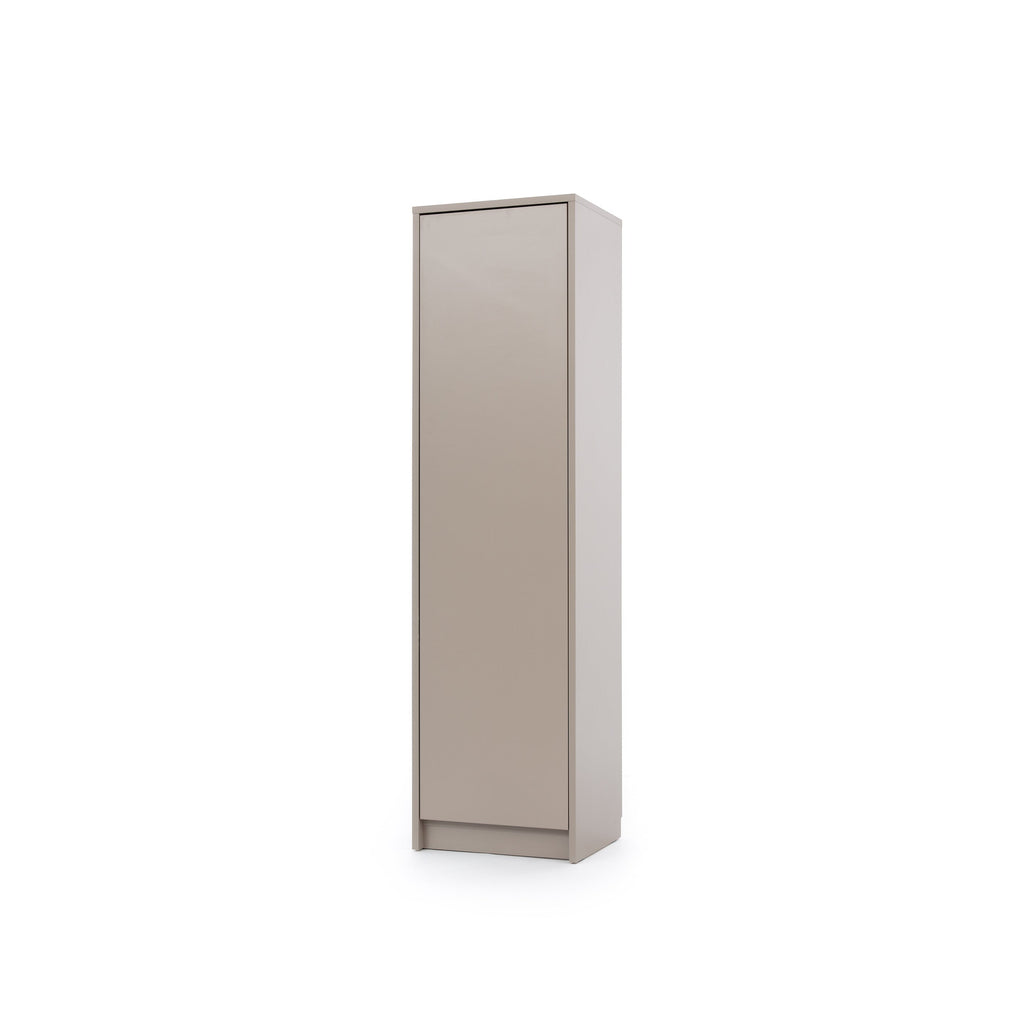 Ein moderner und funktionaler Kleiderschrank mit einer Tür, ideal für die Aufbewahrung in jedem Raum. Dank seines schlanken Designs und seiner hohen Form maximiert er den Platz und wirkt dabei elegant.