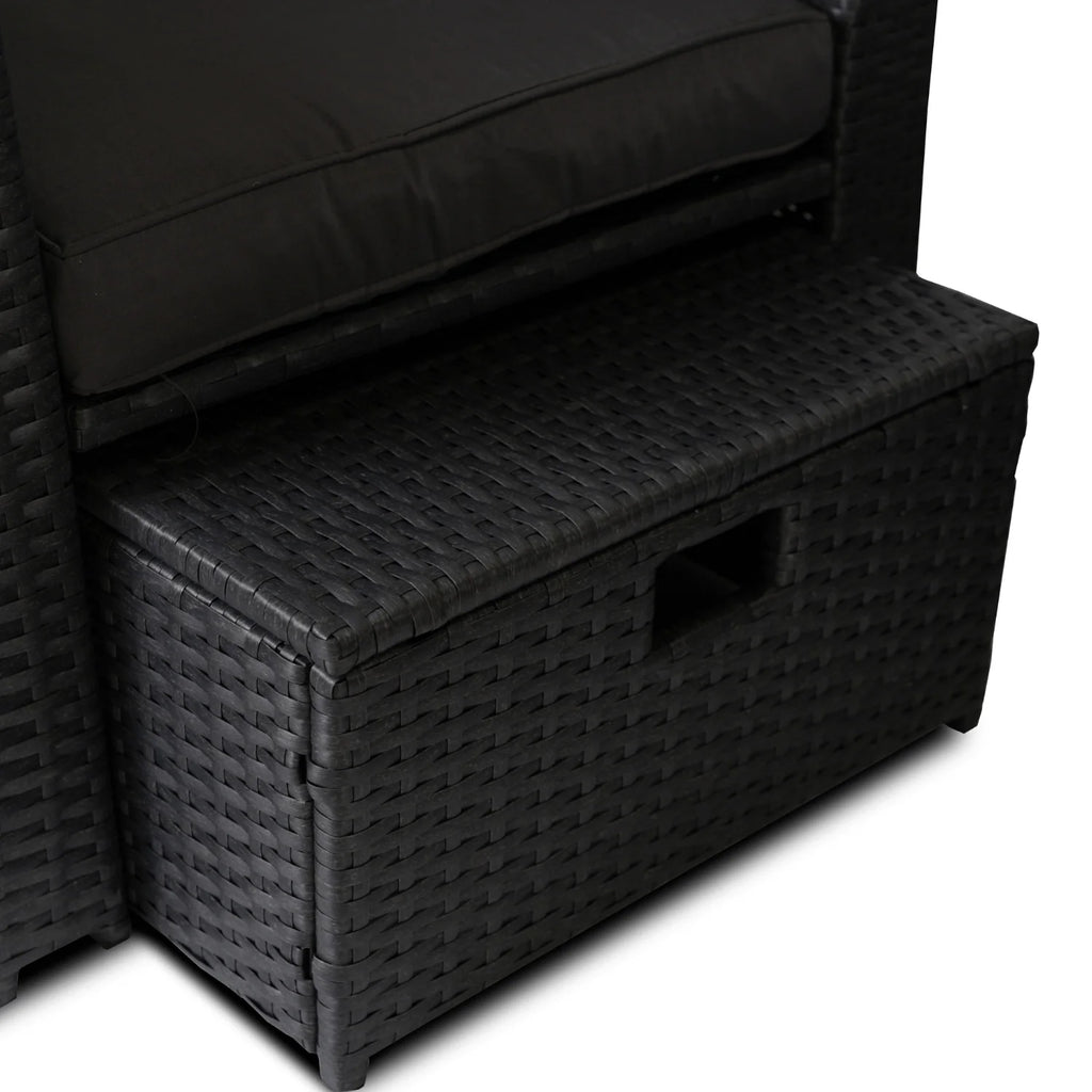 Hergestellt aus hochwertigem Technorattan , das Langlebigkeit und Widerstandsfähigkeit gegen Witterungseinflüsse gewährleistet. Die wasserdichten Kissen bieten Komfort bei jedem Wetter.