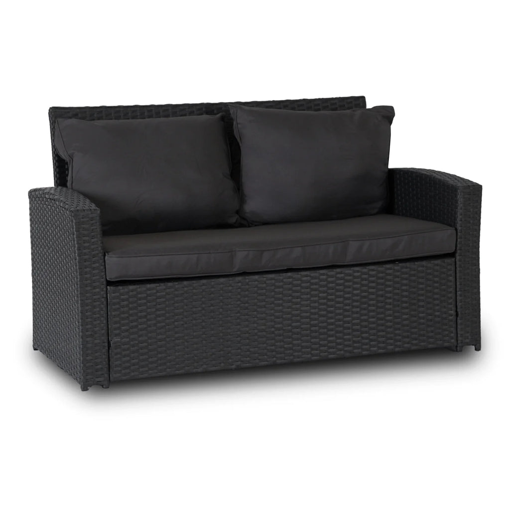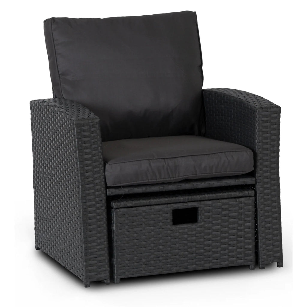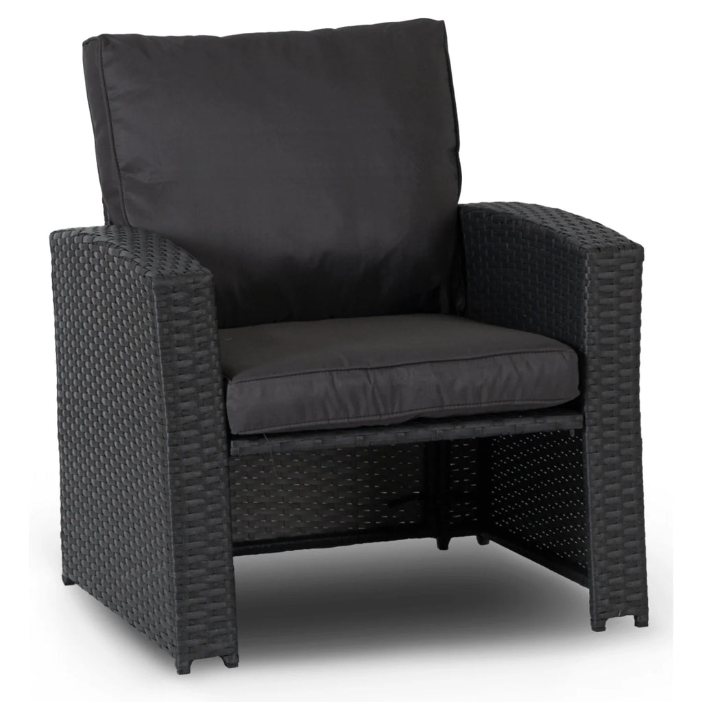 Ergonomisch geformte Sessel und ein tiefes Sofa sorgen für optimale Entspannung. Die kompakte und dennoch geräumige Struktur eignet sich perfekt für verschiedene Außenbereiche.