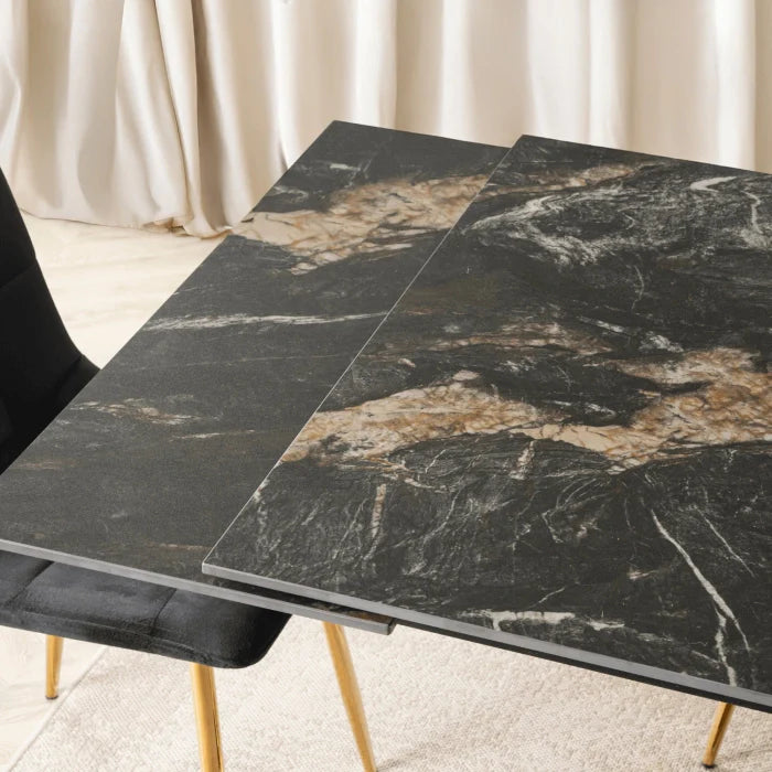 Ausziehbarer Esstisch IBIZA Schwarzer Marmor/Gold