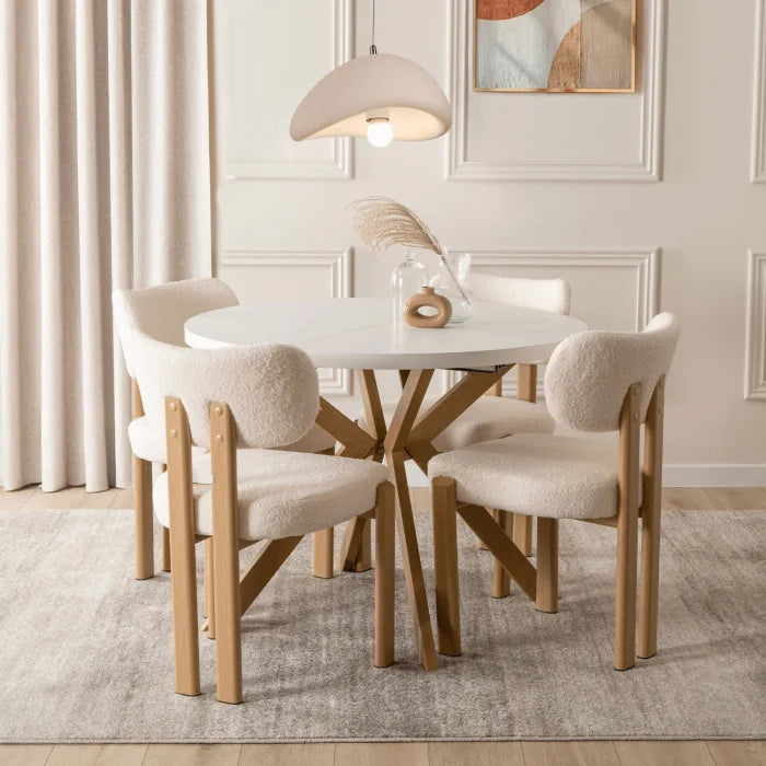 Runder, ausziehbarer Esstisch LUKAS Weiß/Skandinavische Eiche