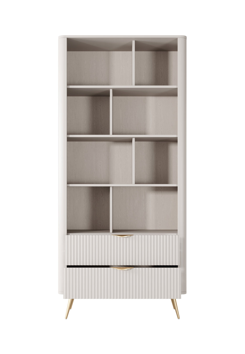 In seiner beigen Variante bringt das Lask Lante Bücherregal Wärme und Licht in Ihren Raum. Seine sanften Töne mildern die markante Form und bieten dennoch die gleiche hohe Funktionalität: fünf offene Regale für Bücher oder Deko und ein Unterschrank, um wichtige Dinge außer Sichtweite aufzubewahren. Die geschwungenen MDF-Kanten und die Metallbeine sorgen für einen edlen, eleganten Look, der perfekt zu neutralen Innenräumen passt.