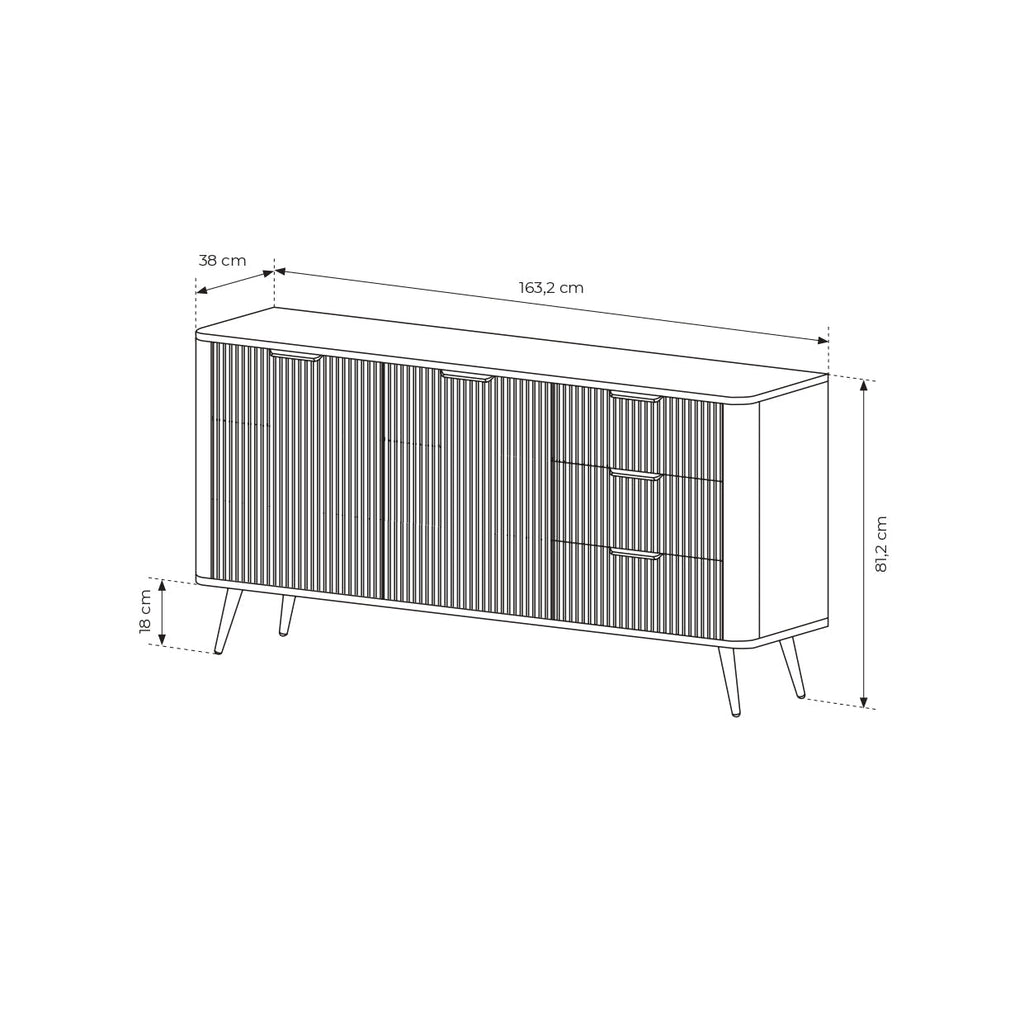 Abgerundete Ecken und erhöhte Beine spiegeln die charakteristischen Merkmale der Lante-Kollektion wider und sorgen für ästhetische Harmonie in Ihrem Raum. Hinter jeder Tür befindet sich ein Innenregal, ideal zum Stapeln sperriger Gegenstände, während die drei Schubladen Platz für kleinere Utensilien bieten.