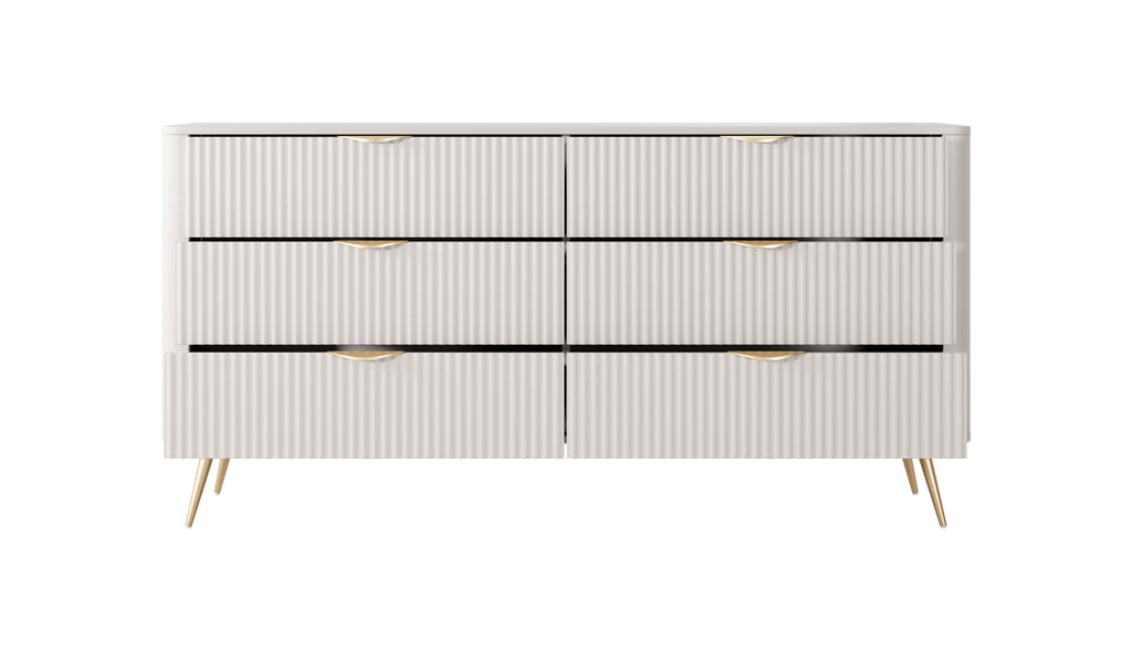Das beigefarbene Sideboard Lante strahlt ruhige Eleganz aus und bietet gleichzeitig hochfunktionalen Stauraum. Die sechs symmetrisch angeordneten Schubladen bieten ideale Fächer für Haushaltsgegenstände, Wäsche oder Elektronik. Die kontrastierenden schwarzen Beine und Griffe verleihen dem Sideboard eine moderne Struktur, während der warme Beigeton für mehr Licht und Luft im Raum sorgt.