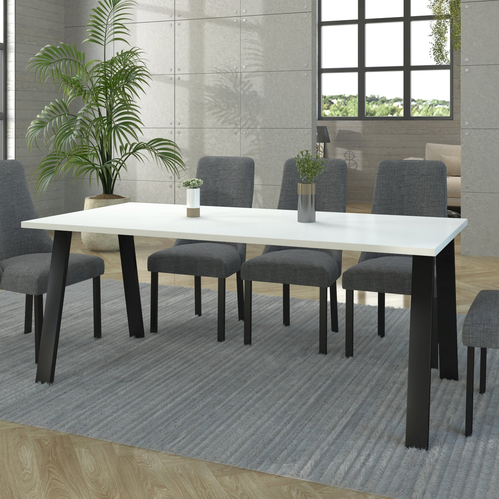 Der LE Kleo 185x90 in Weiß ist ein eleganter und moderner Tisch, der zeitgenössische Ästhetik mit praktischer Funktionalität verbindet. Seine mattweiße Laminatplatte sorgt für einen klaren, minimalistischen Look , während das robuste schwarze Metallgestell einen industriellen Touch verleiht und für Stabilität und Langlebigkeit sorgt. Ideal für Essbereiche, Arbeitsbereiche oder Loft-inspirierte Interieurs bietet dieser Tisch ausreichend Platz für bis zu 8 Personen .