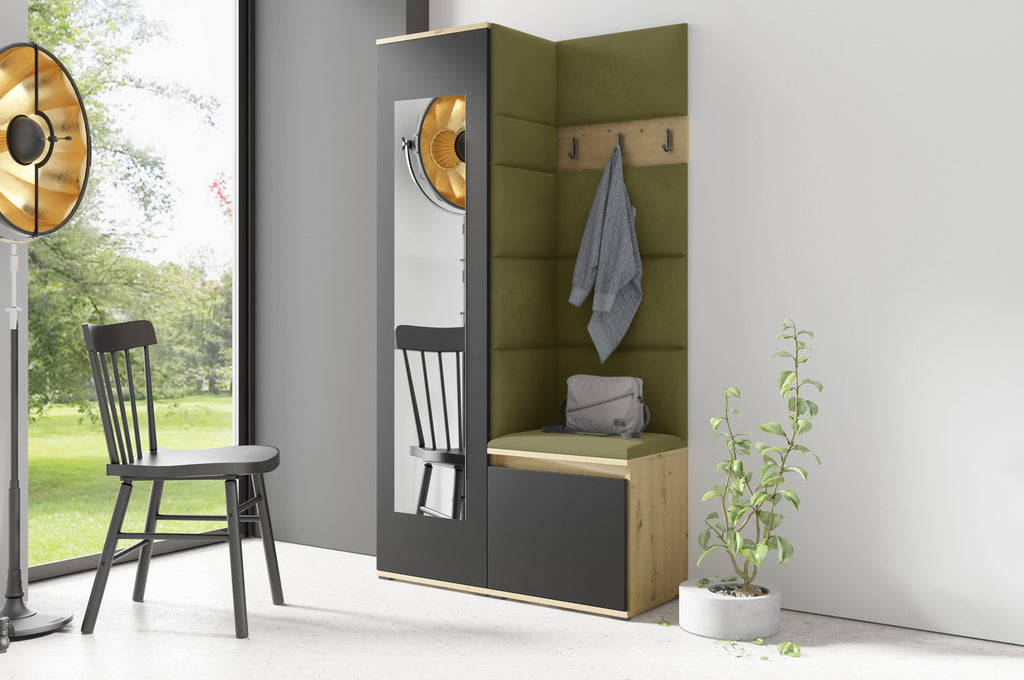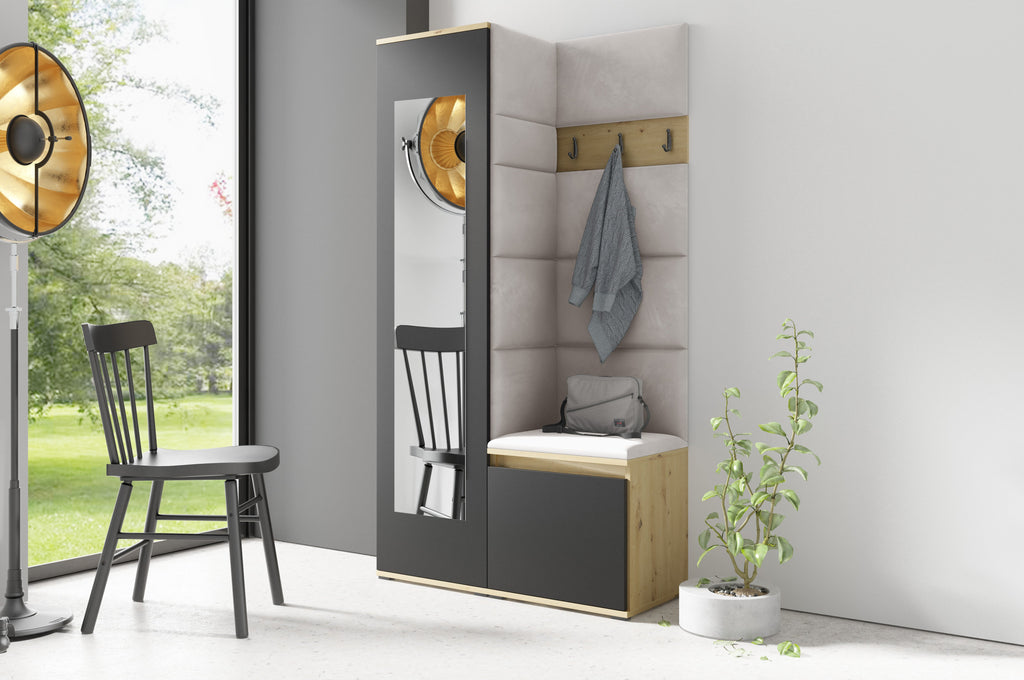 PK Emi 1 Flurschrank Artisan Oak / Schwarz - Gepolsterte Paneele in verschiedenen Farben