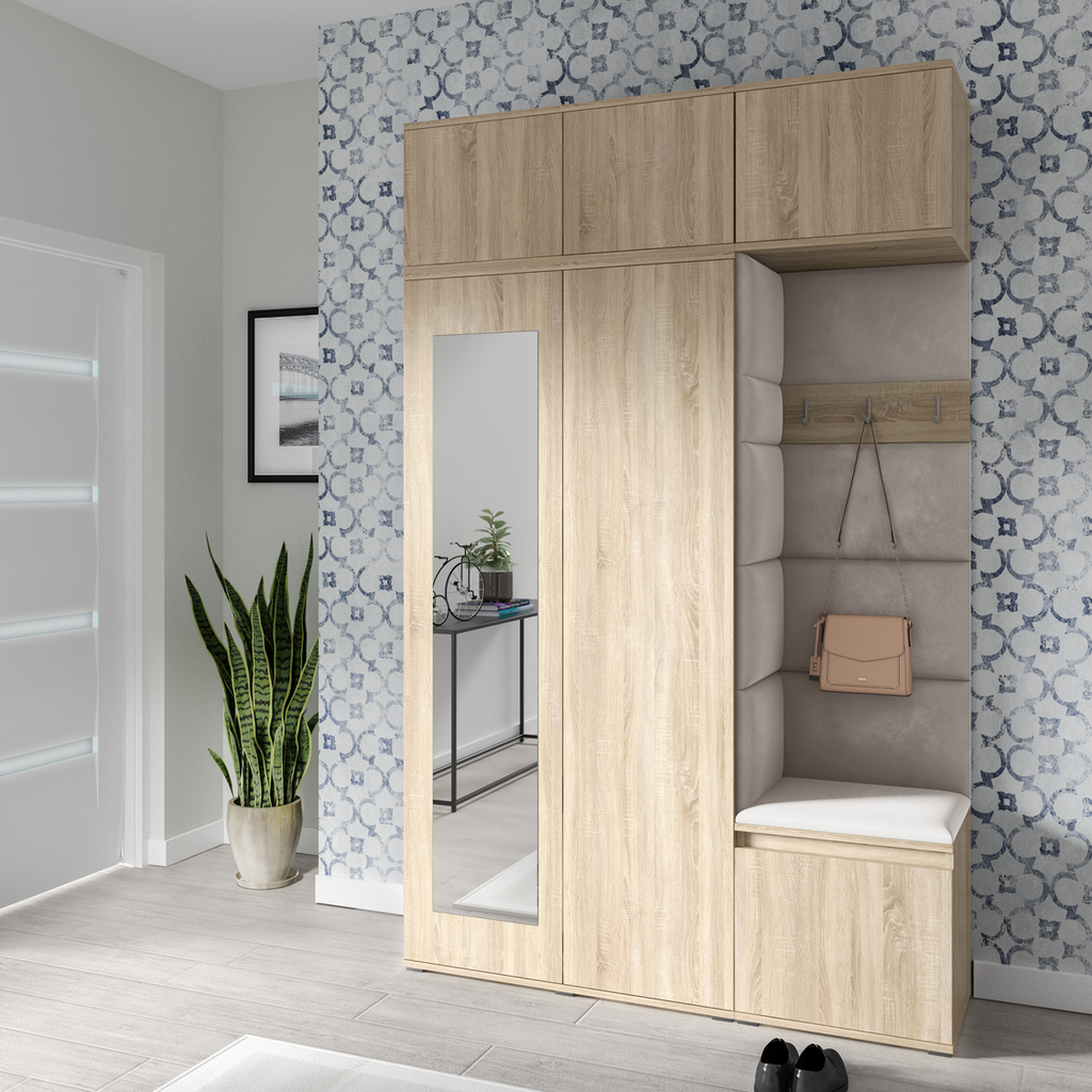 PK Emi 18 Flurgarderobe Sonoma Eiche - Polsterpaneele in verschiedenen Farben