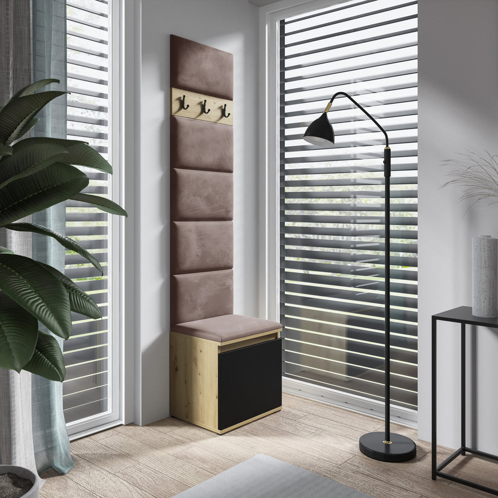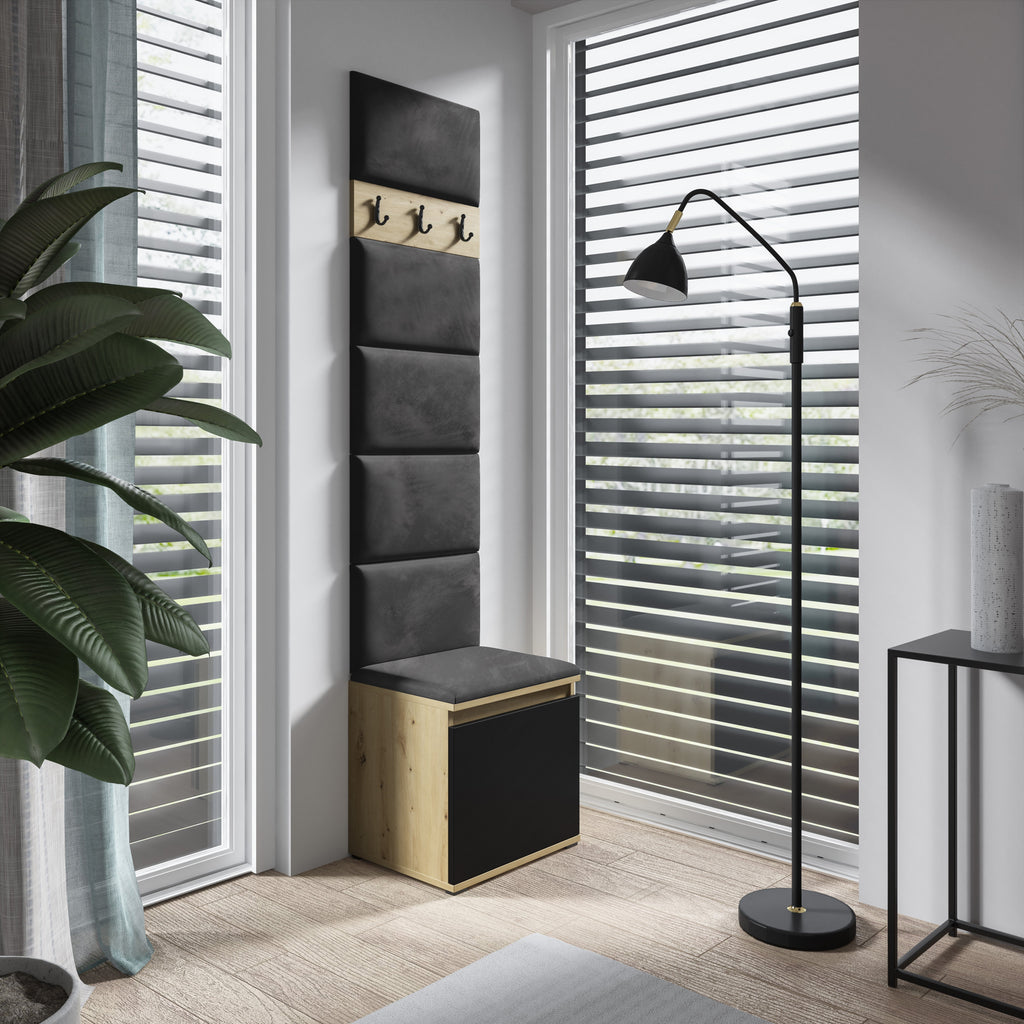 PK Emi 1 Flurschrank Artisan Oak / Schwarz - Gepolsterte Paneele in verschiedenen Farben