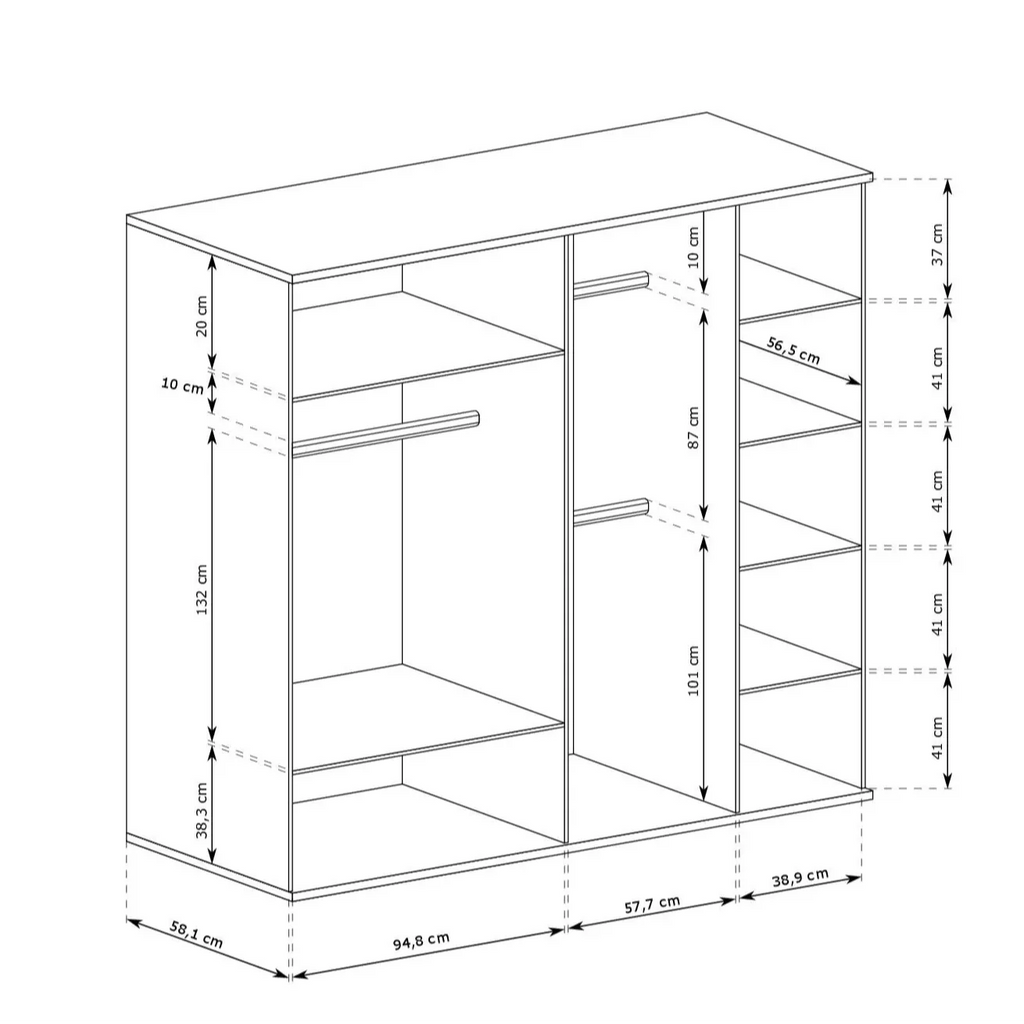 Werten Sie Ihr Schlafzimmer mit dem S-Cali-Kleiderschrank C-24 auf, einer perfekten Kombination aus Funktionalität, modernem Design und erstklassiger Verarbeitung, um Ihren täglichen Aufbewahrungsbedürfnissen gerecht zu werden.